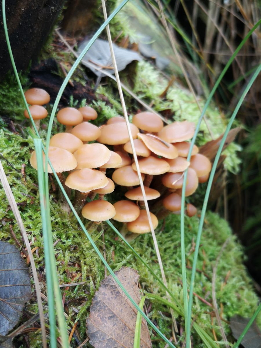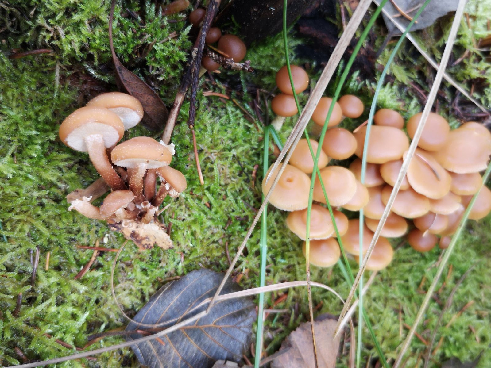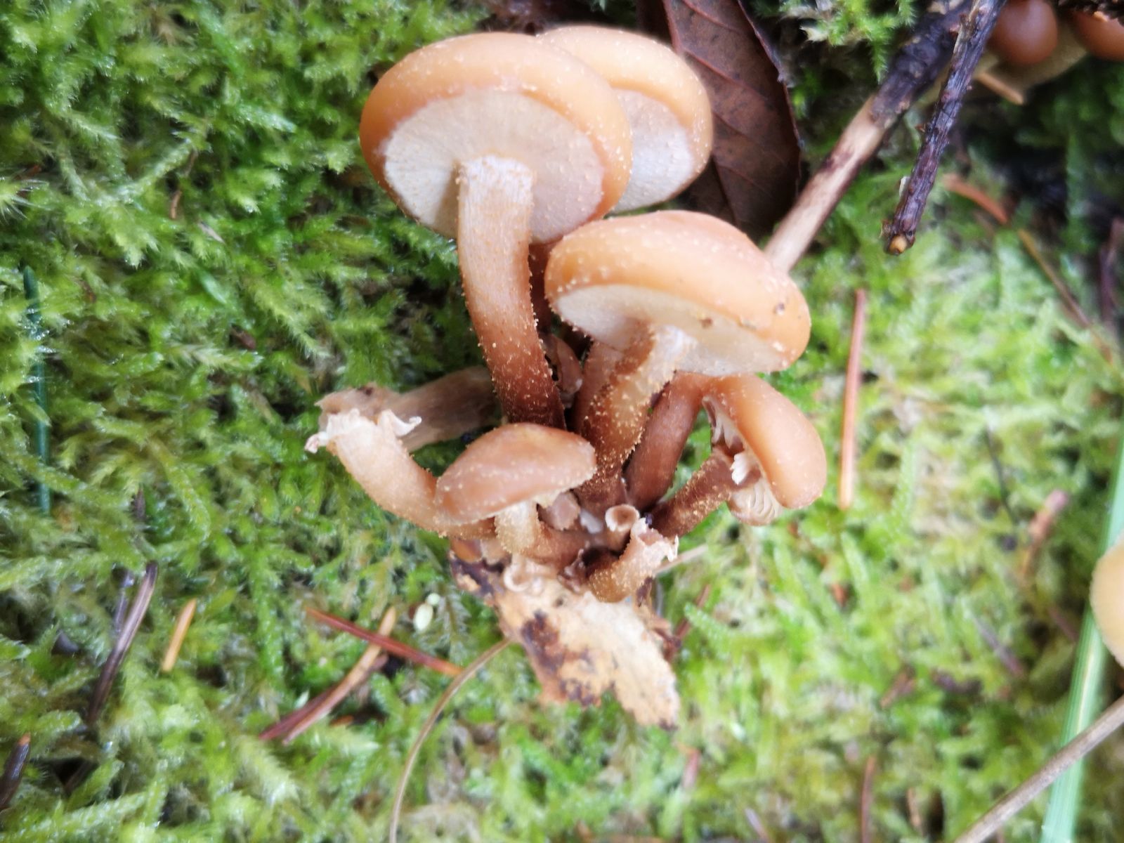 um zu betonen, wie ähnlich sich die beiden sind, habe ich Funde von heute nebeneinander fotografiert. Die Gifthäublinge sind so richtig schön büschelig gewachsen. Daneben habe ich vom Nachbarstumpf gesammelte Stockschwämmchen gelegt.