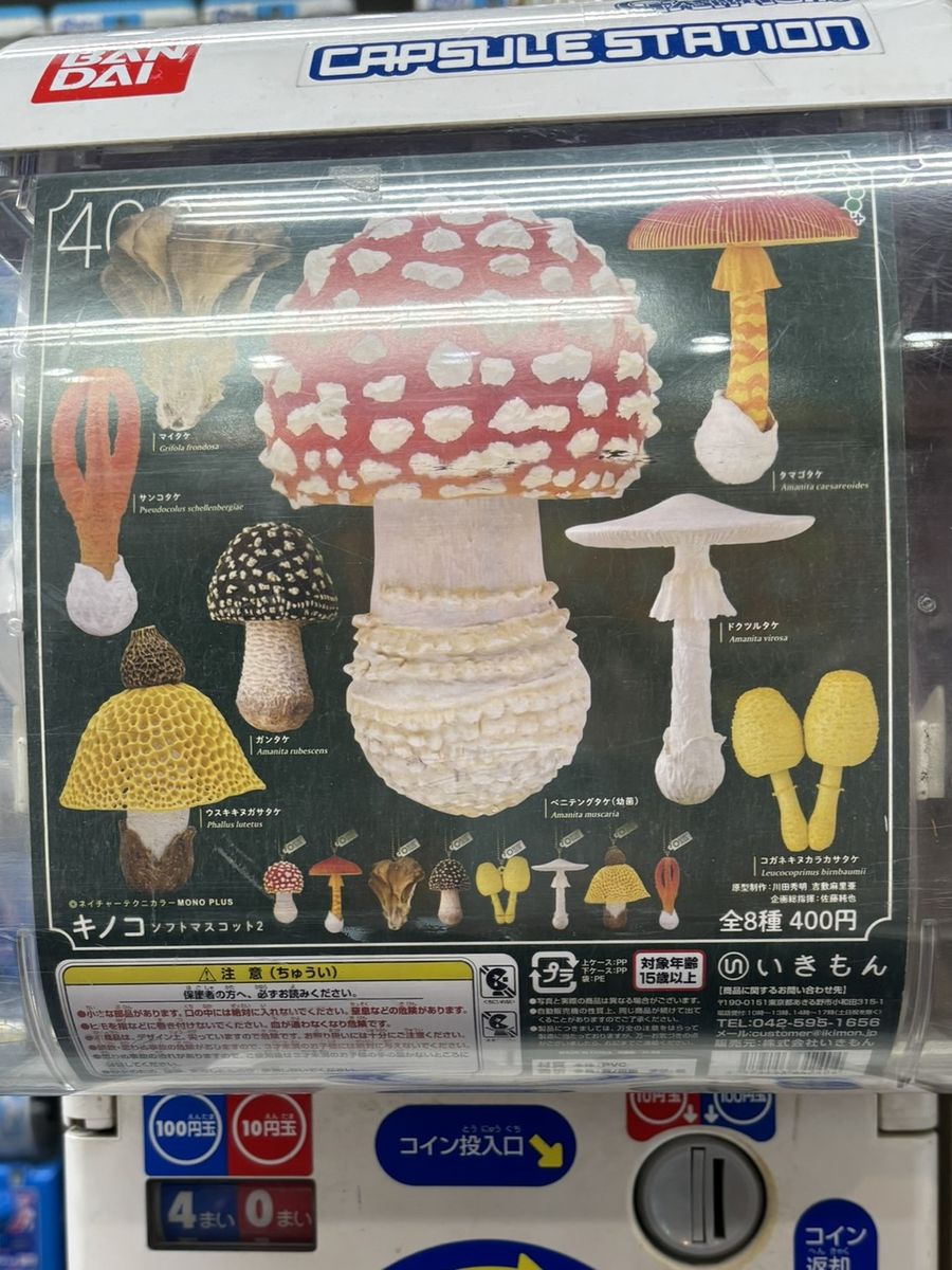 Speziell für uns Pilzinteressierte hatte ich letztens in Tokyo eine Pilz-Gachapon entdeckt.
