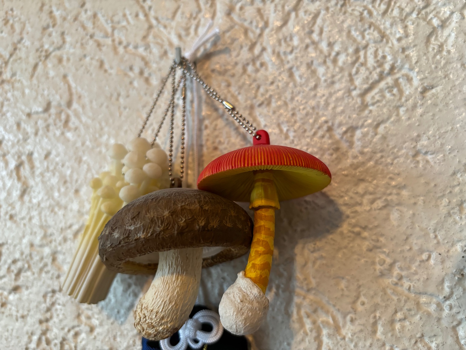 Hier gibt es hübsche Schlüsselanhänger in Pilzform zu ergattern. Dabei ist auch interessant zu sehen, welche Arten man in Japan so kennt.