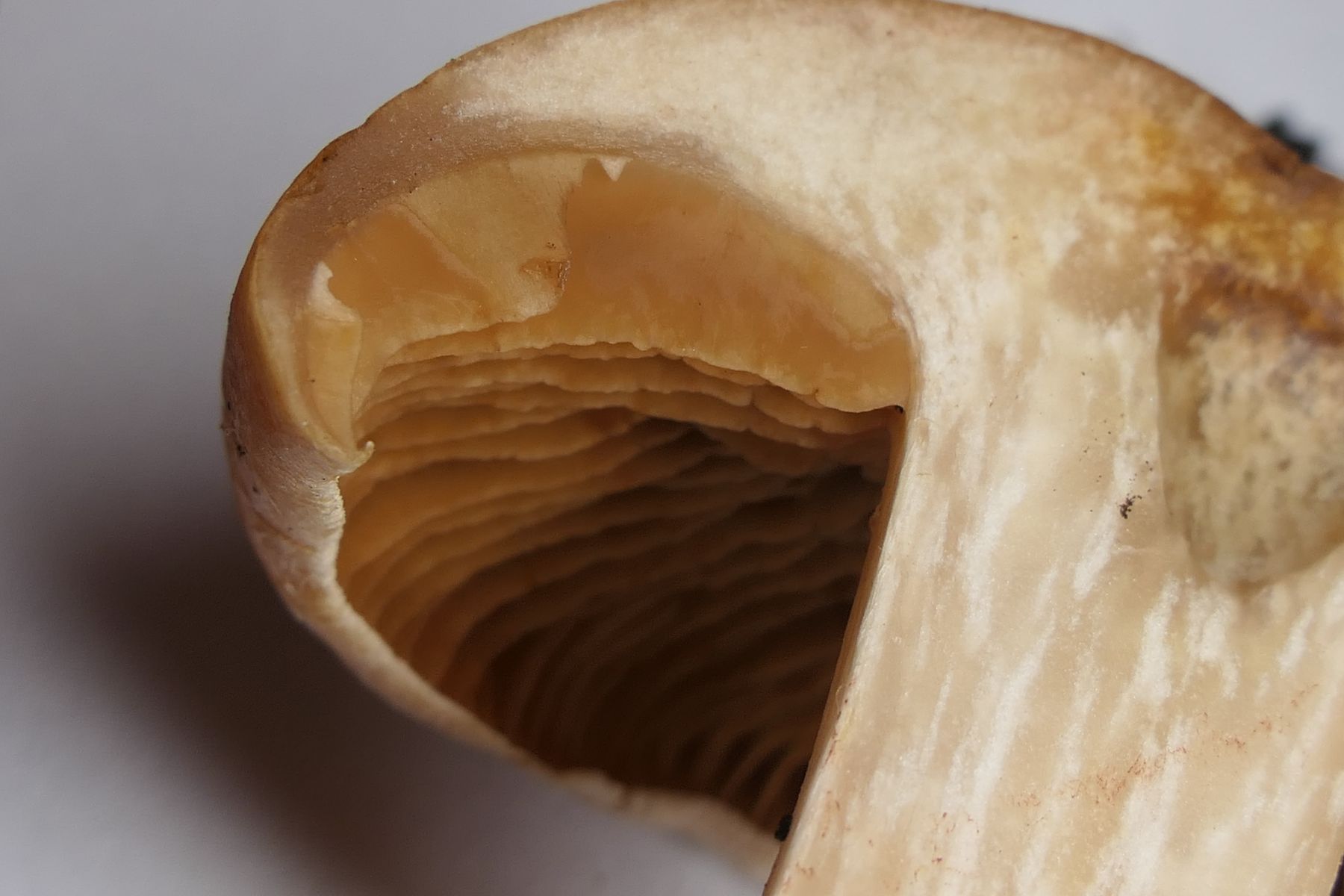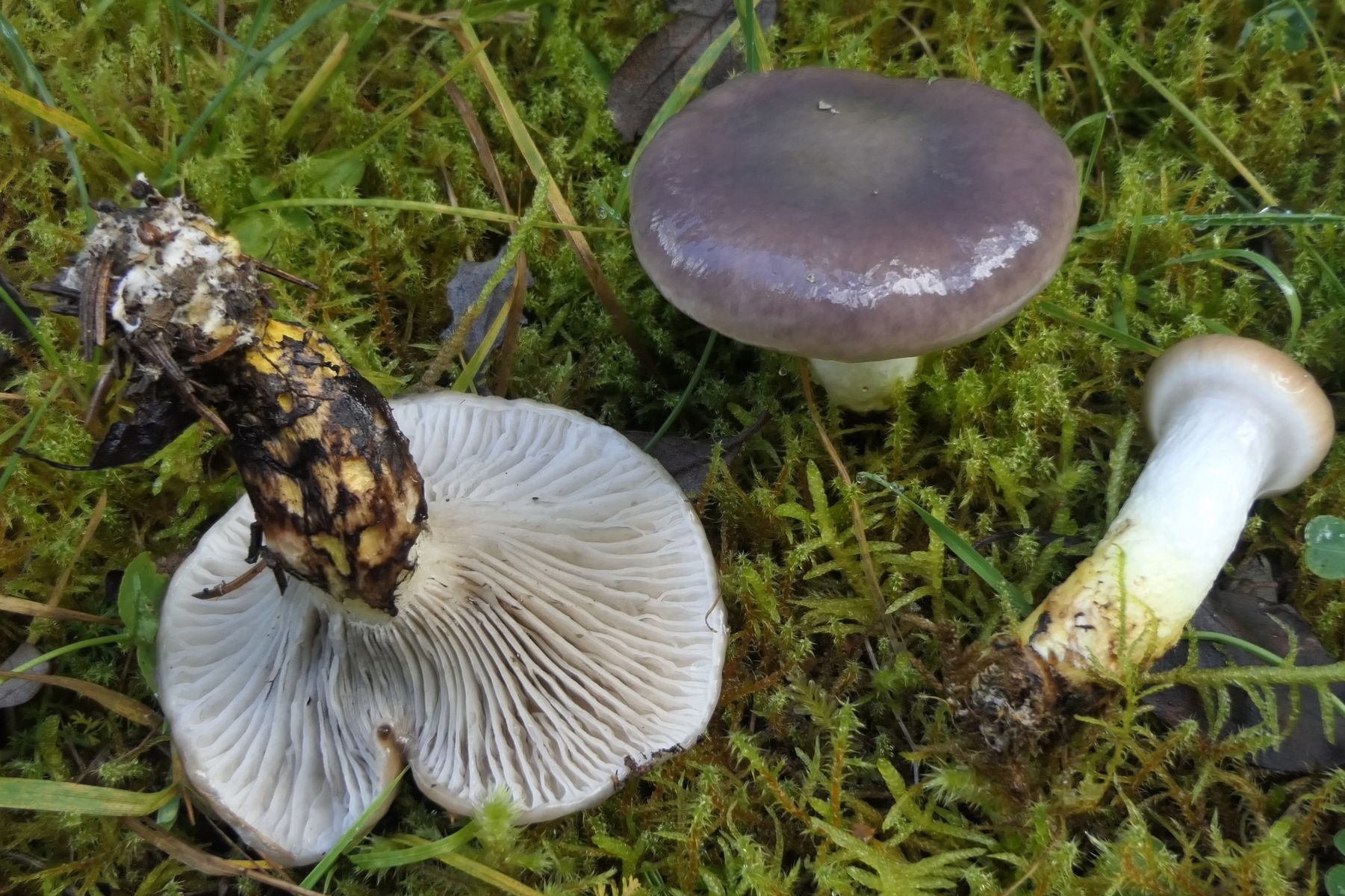 Stiele und Stielfleisch der beiden Grünlingsfunde im Vergleich (rechts Pappelgrünling)
