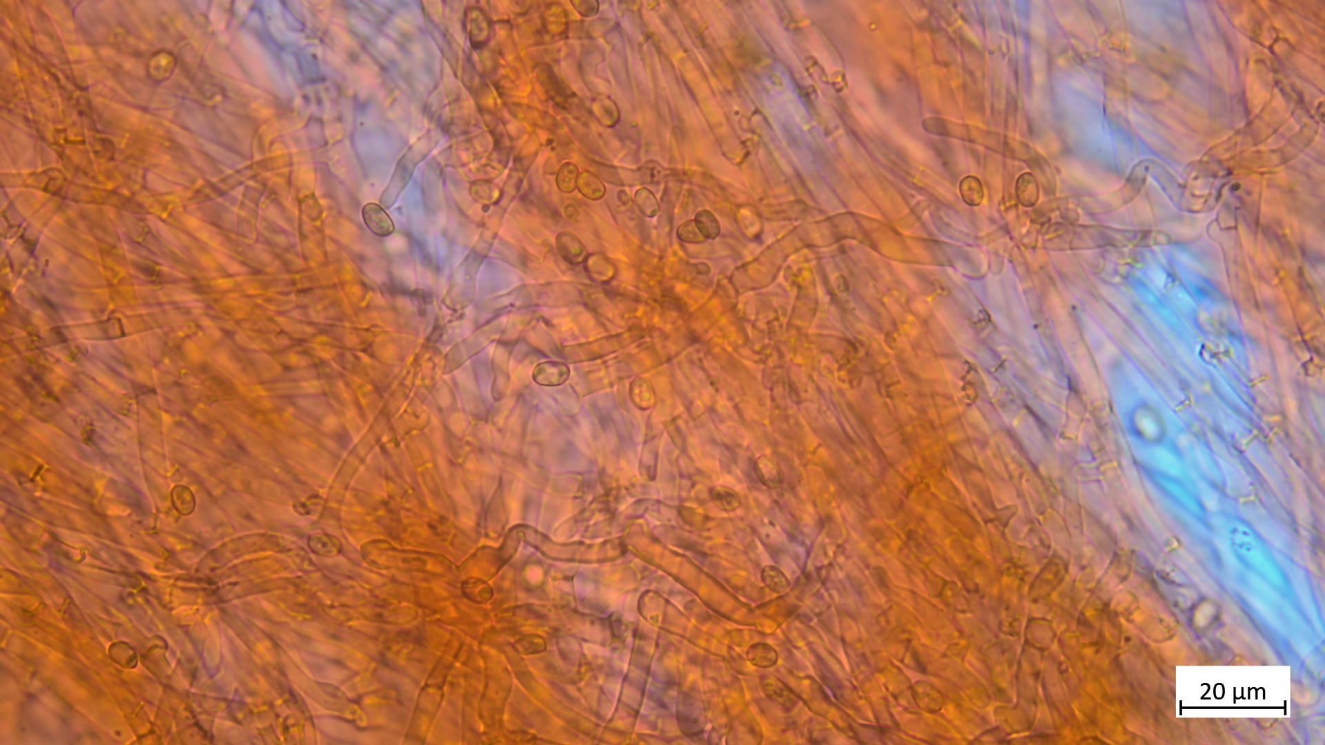 Sporen: 10,6-11,3 µm (av. 11,0 µm, SD 0,2 µm) x 6,0-6,2 µm (av. 6,1 µm, SD 0,1 µm); Q = 1,7-1,9 (av. 1,8, SD 0,0)(n = 6)