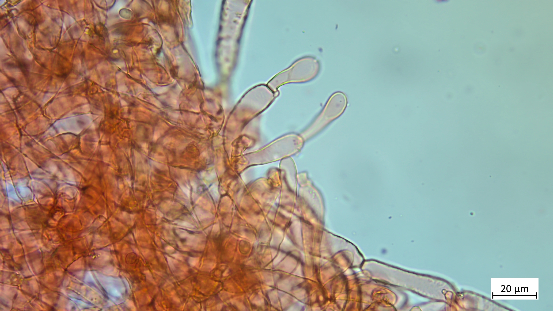 Sporen: 6,9-7,9 µm (av. 7,2 µm, SD 0,4 µm) x 4,6-5,0 µm (av. 4,8 µm, SD 0,1 µm); Q = 1,4-1,6 (av. 1,5, SD 0,1)(n = 5)