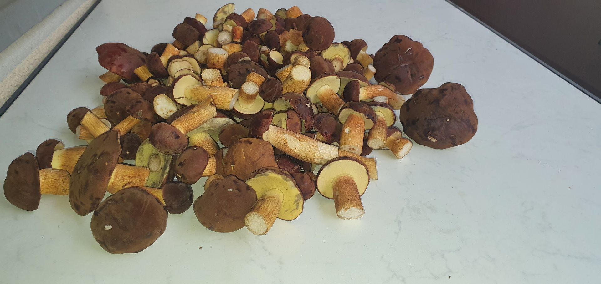 Bitte nicht so viele Pilze abschneiden, wenn du (noch) nicht weisst was du da sammelst.