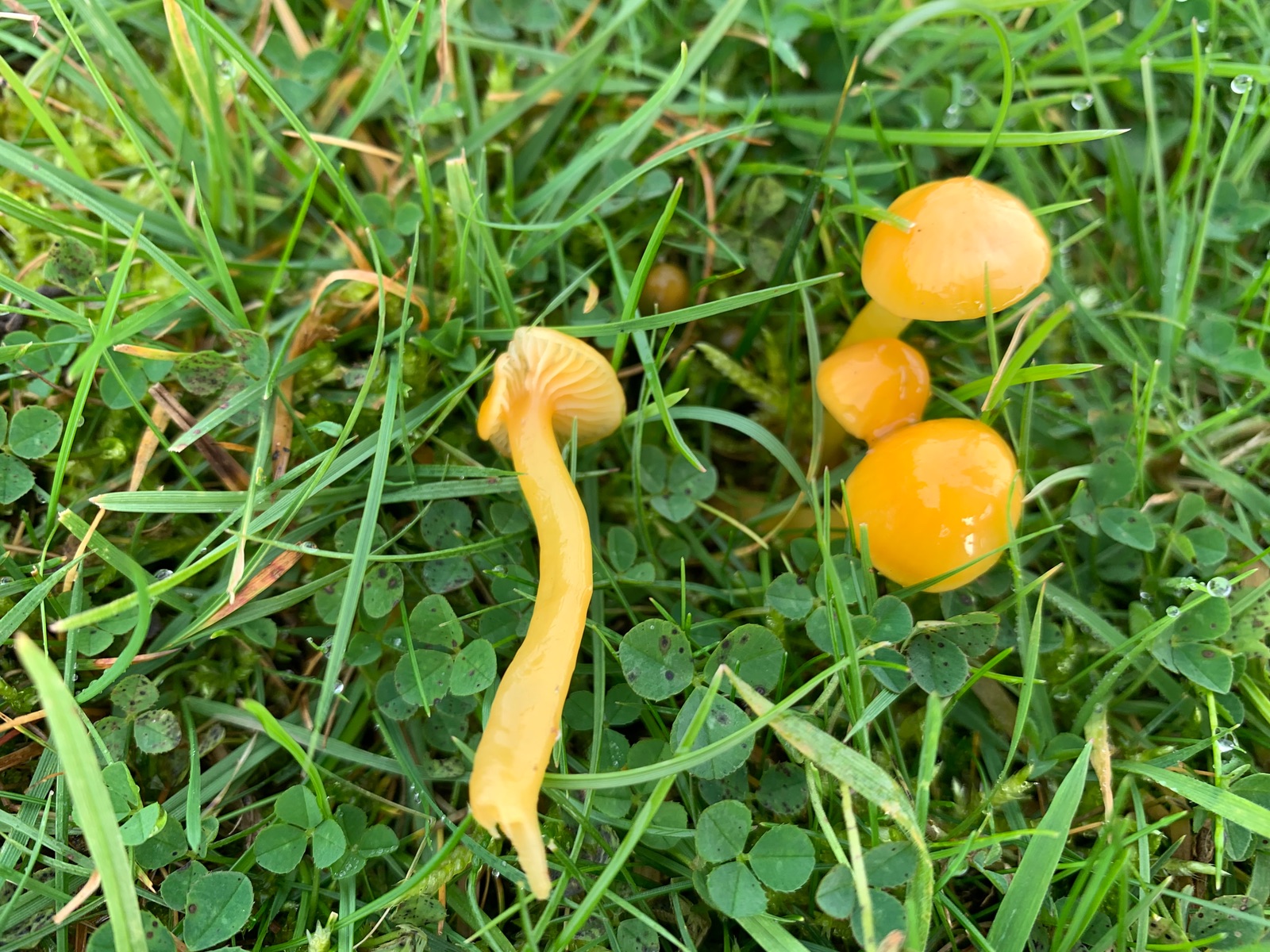 Hab mir mal Oehrling s Rat zur Saftlingssuche zu Herzen genommen und mich auf einer gemähten aber nicht gedüngten Wiese umgeschaut. Und tatsächlich gab es dort Saftlinge und weiteres zu finden. Da kommen jetzt viele Bilder, ich bin ohne gute Literatur zwar völlig verloren in der Gattung, vielleicht könnt ihr ja aber etwas hier bestimmen, und wenn nicht sind die Wiesenpilze ja immerhin eine Pracht fürs Auge.