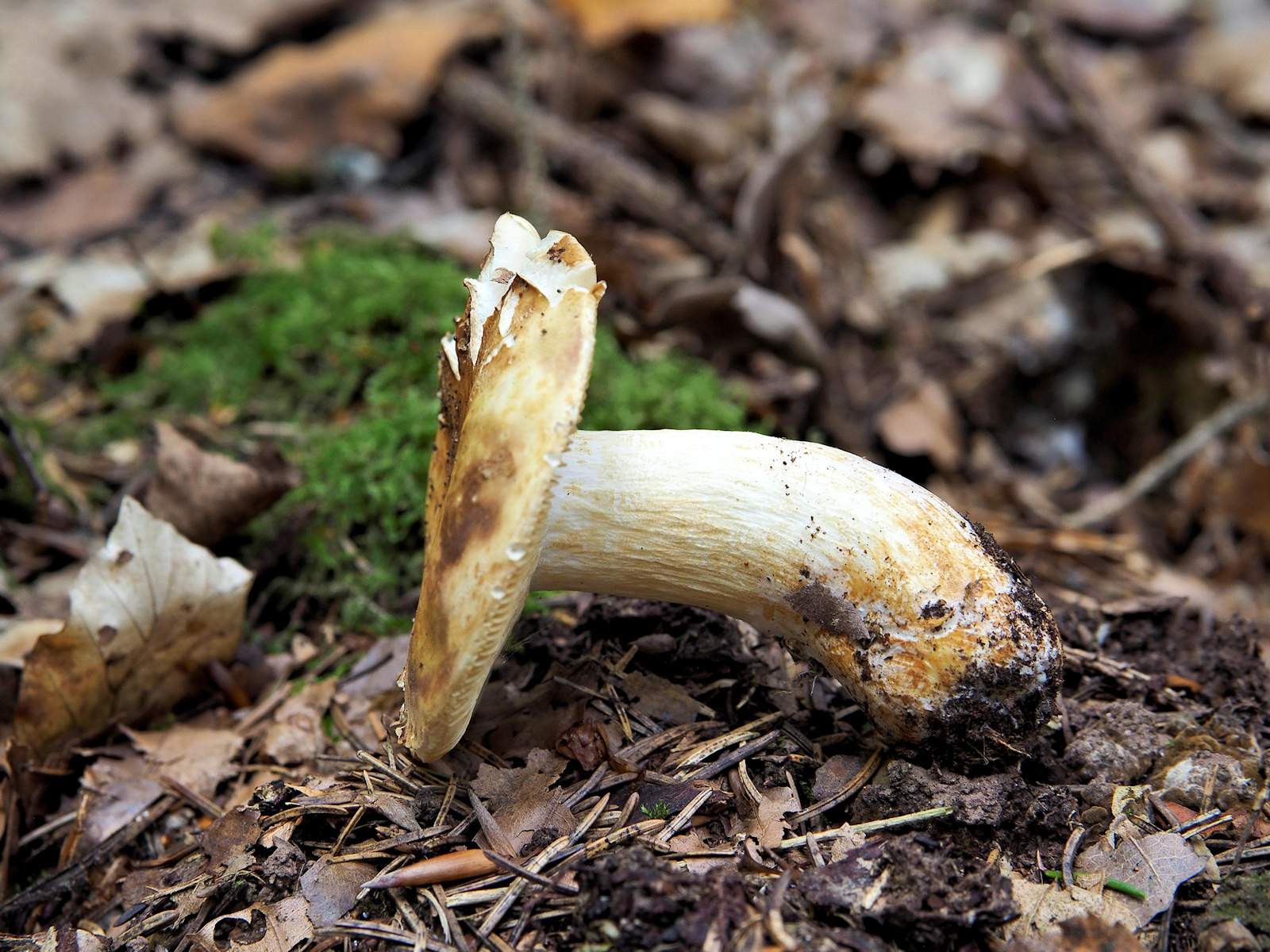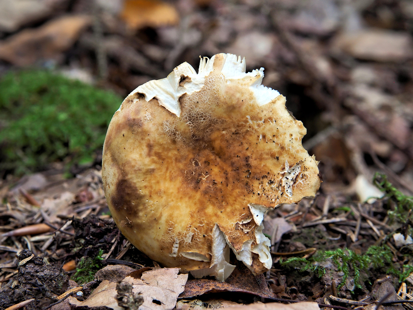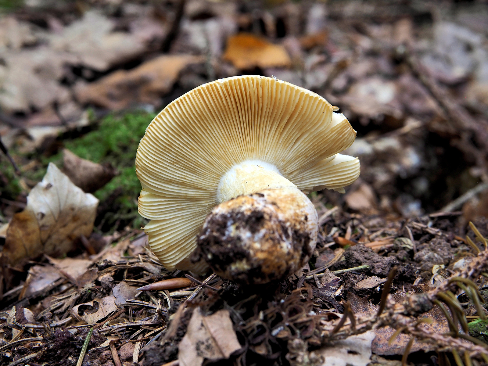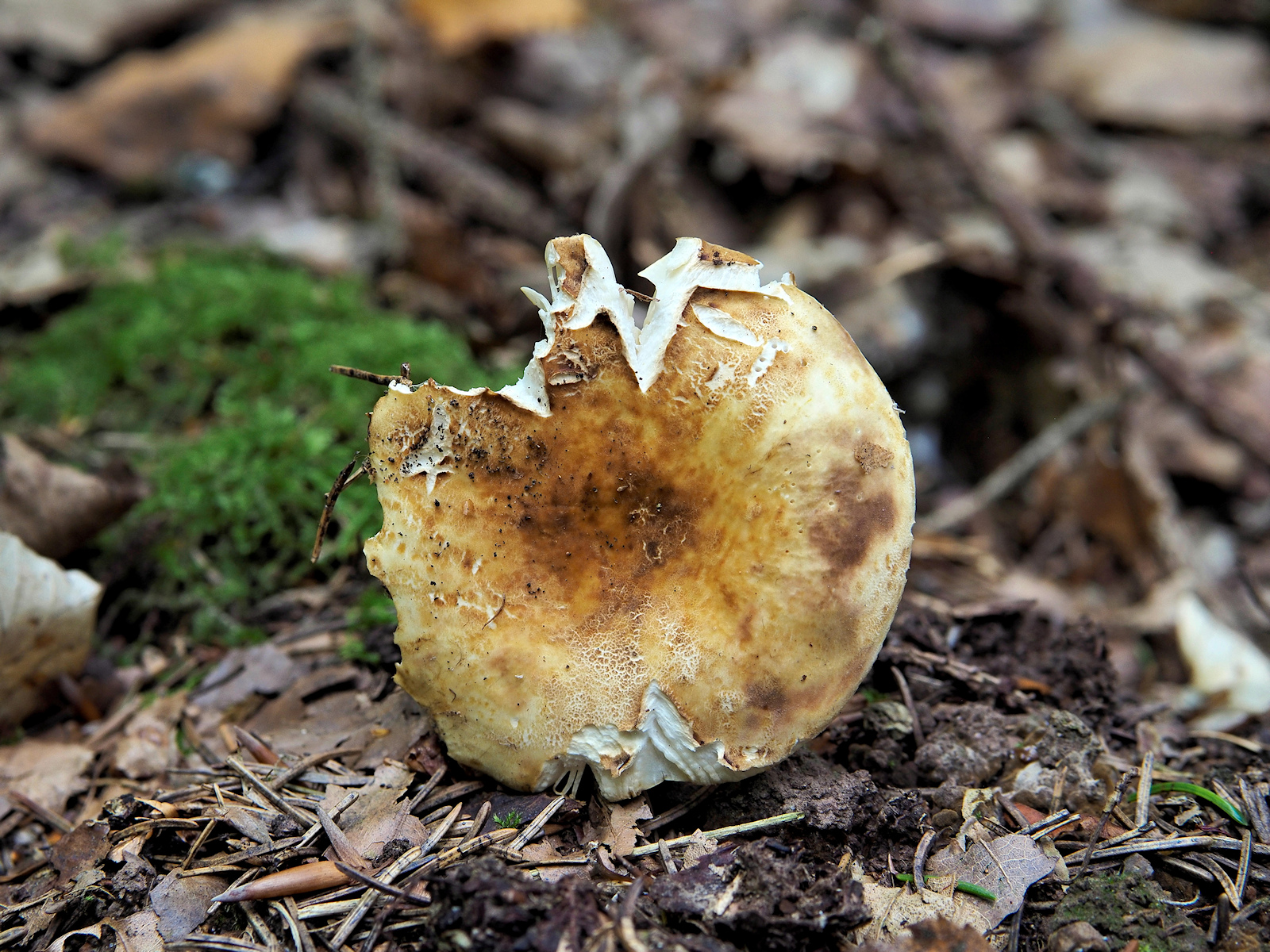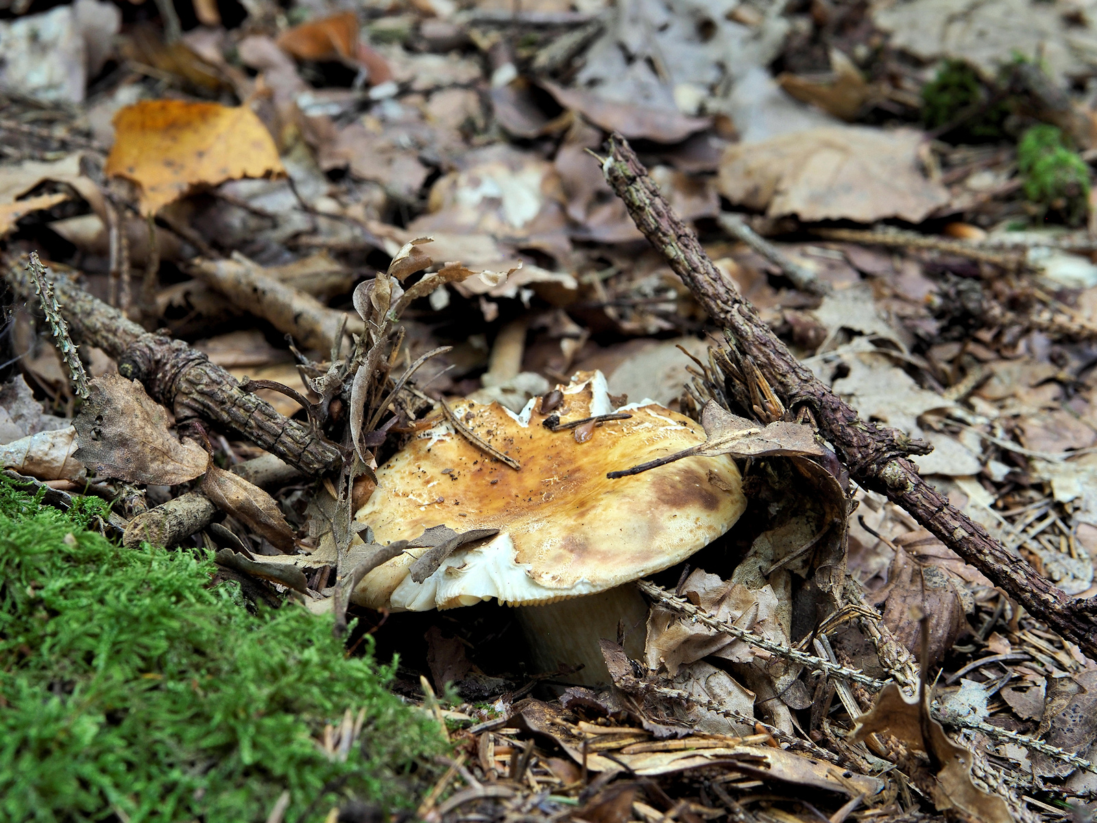 Neben einer R. firmula (Nadelbaum), drei verschiedenfarbige R. melitodes (Laubbaum) und eine aus dem R. integra Aggregat (Nadelbaum) wurden dieses Jahr an dieser Stelle aufgelesen, aber ob das stimmt muss ein extra Beitrag noch klären. So wundert es auch nicht, dass ich den heutigen Fund optisch erst als eine weitere R. melitodes eingeschätzt hatte und nur phlegmatisch dazu die Fotos machte. Na gut, ihr wollt ja unbedingt mal wieder einen Täubling sehen...