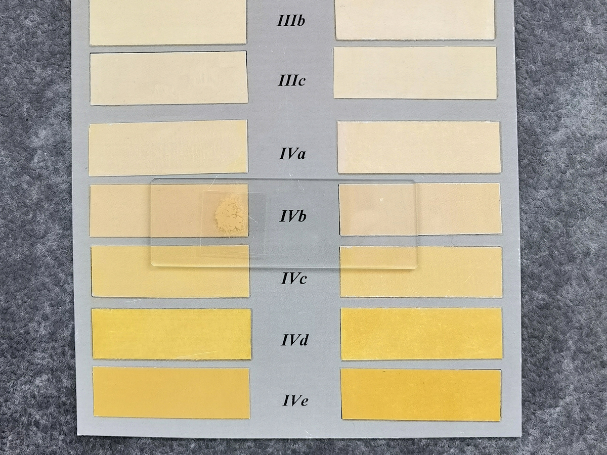 9) das Sporenpulver passt mit seinen "Rotanteilen" gut zu IVb; weder IVa noch IVc werden als optisch passend angesehen.