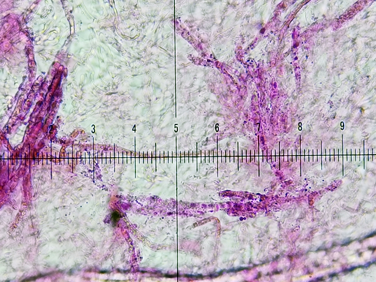 - SV, die Untersuchung der STIEL-Rinde von meinem Fund zeigt eindeutig schwärzlich eingefärbte Hyphen