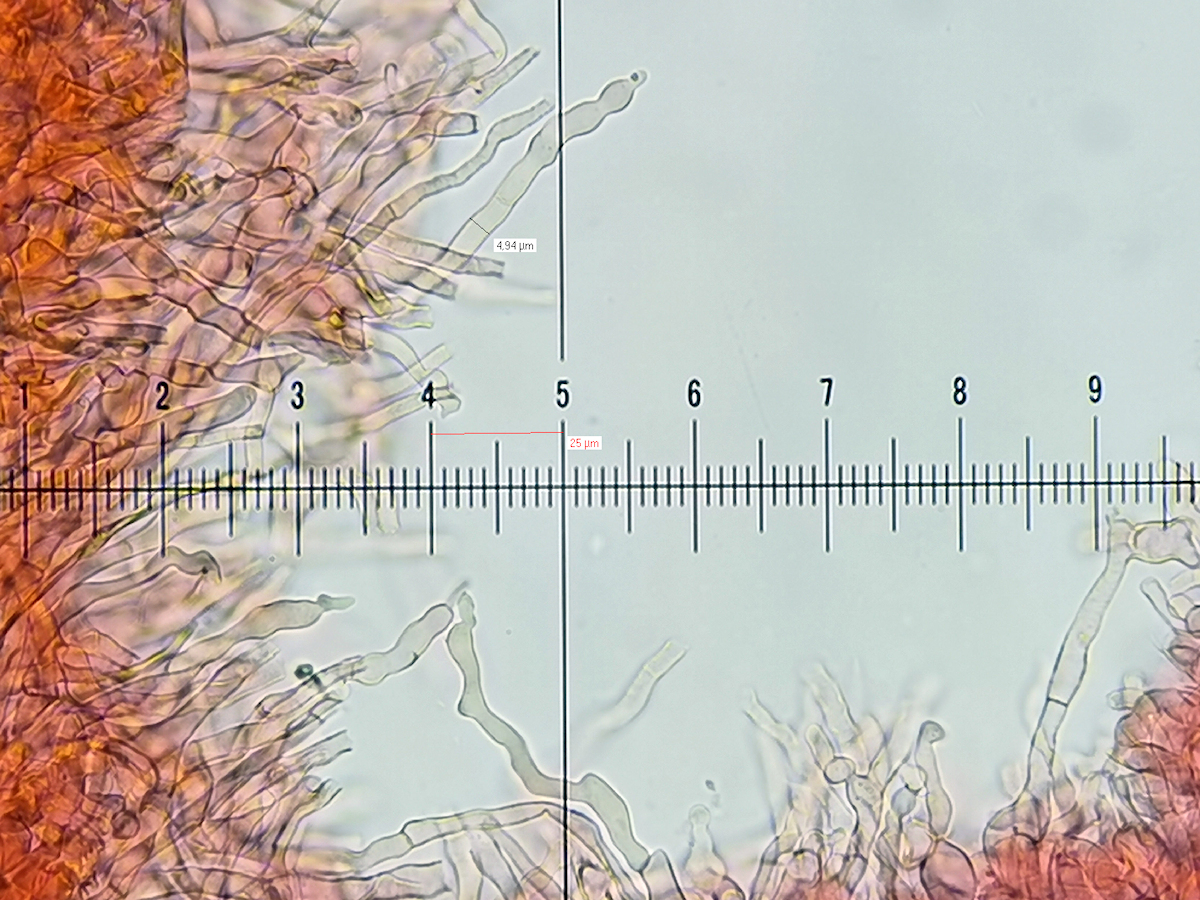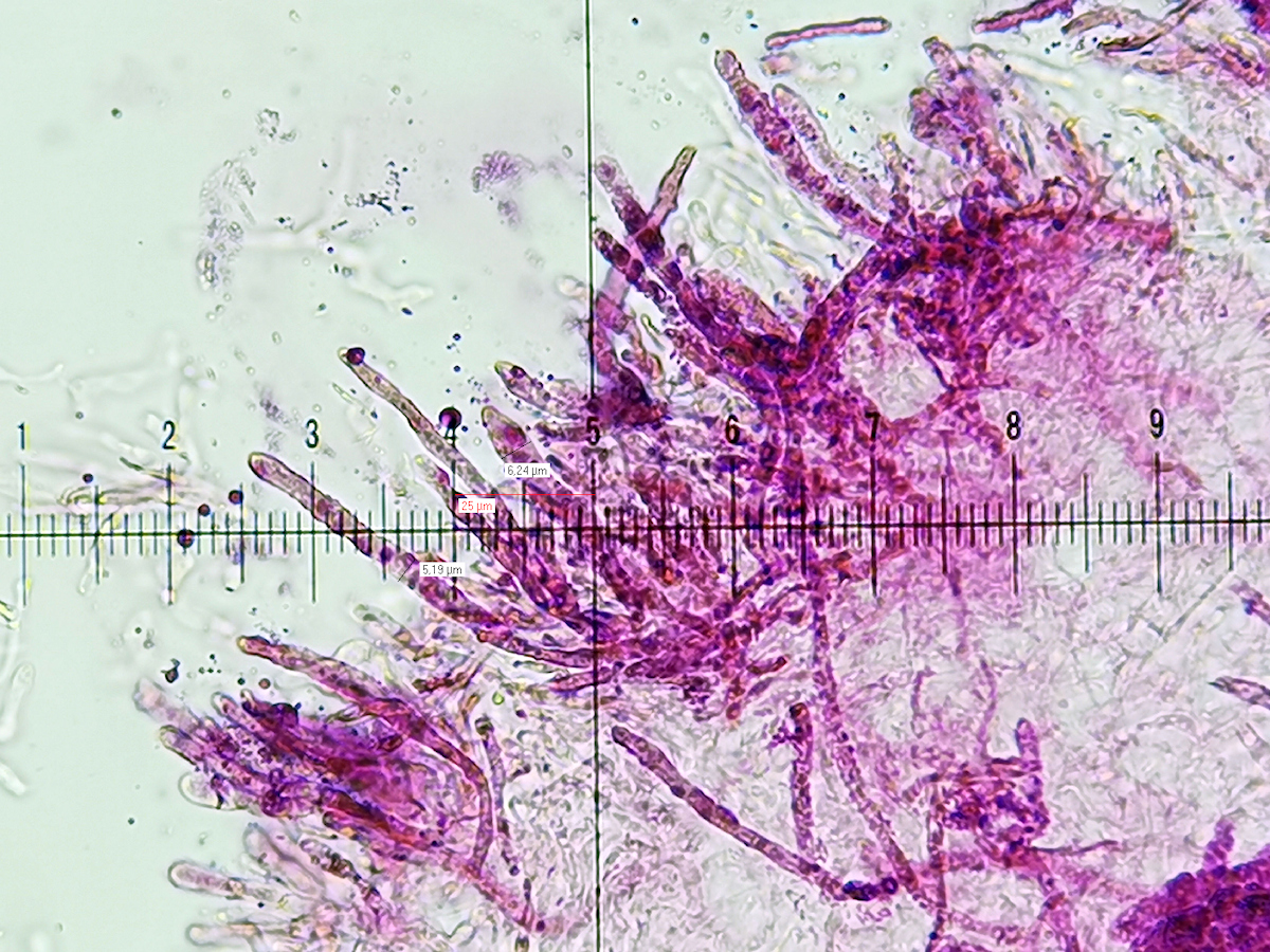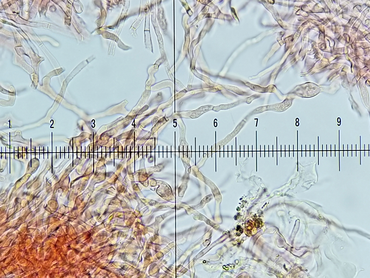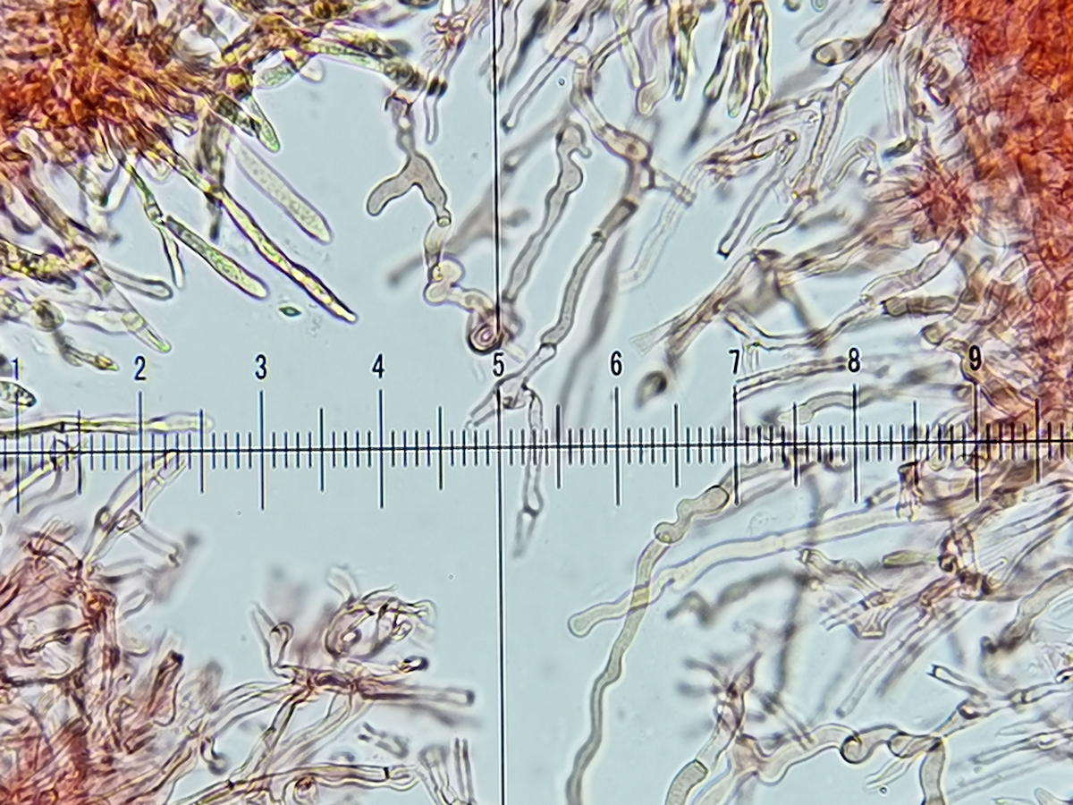 - Resumee bisher: mild, IVb, ohne Pileozystiden, mit überbreiten Primordialhyphen, mittelgrosser und nicht zerbrechlicher Pilz