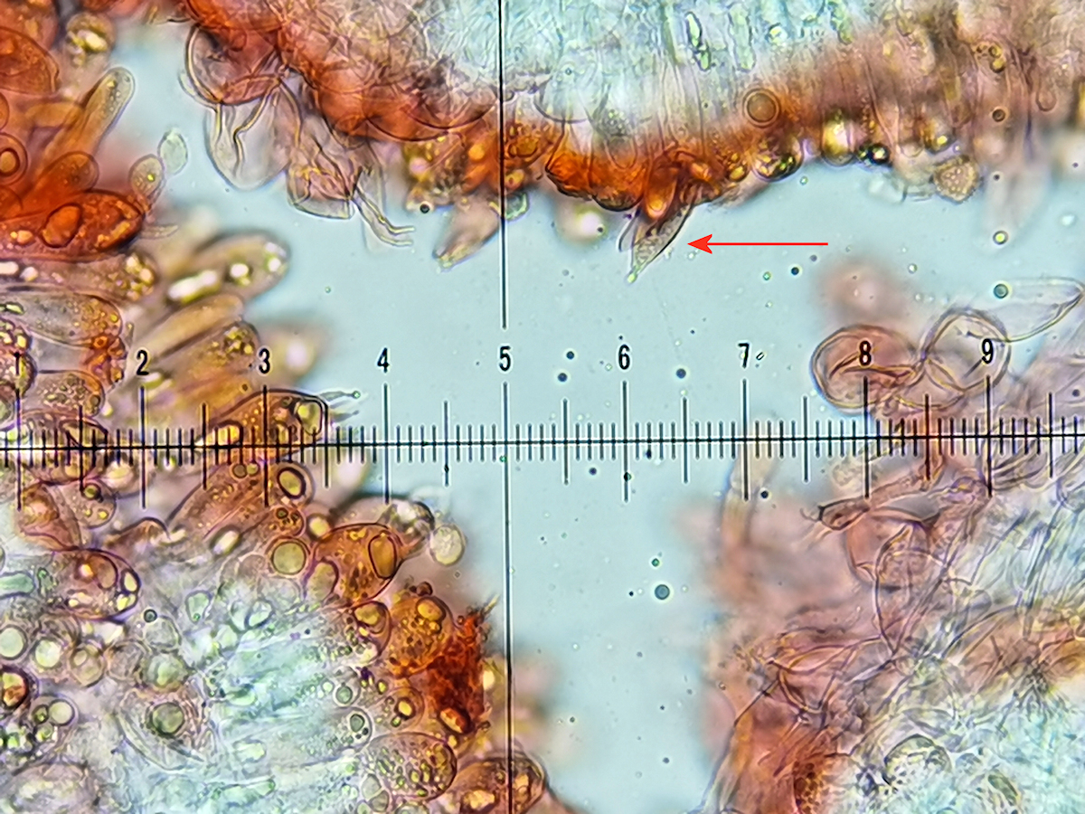 22) Kongo, diese spindelartige Zystide aus der Lamellenschneide vom Fund mit dem "Schnuddel" dran, würde lt. Mikrozeichnungen auch passen