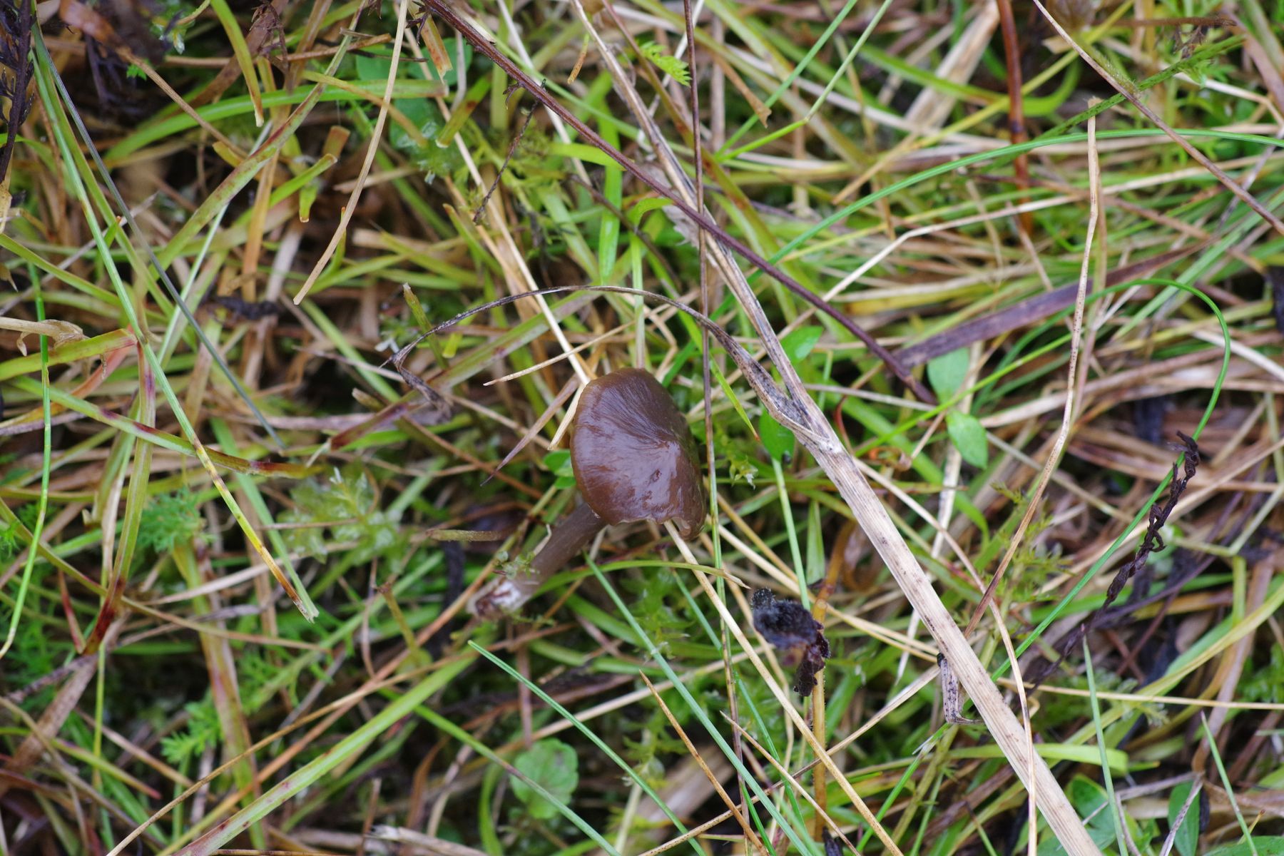 3) ein winziger Pilz, bei dem ich zwar erst an einen Nabeling gedacht habe, den ich nun aber eher Entoloma halte, im Unterholz von Sandreitgras, fernab vom Tageslicht - ein Einzelexemplar. Bei dem finde ich E. incarnatofuscescens, den Dieter hier vorgestellt hat (Bericht vom 03.08.2016: 6 tolle Funde im Garten unter'm Birnbaum) keinen üblen Anfangsverdacht
