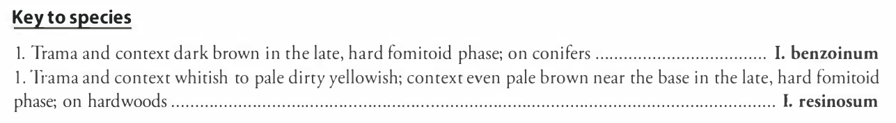 I. resinosum hat in trockenem Zustand weissliches bis hellockerfarbenes Fleisch (deutlich braun bei I. benzoinum)