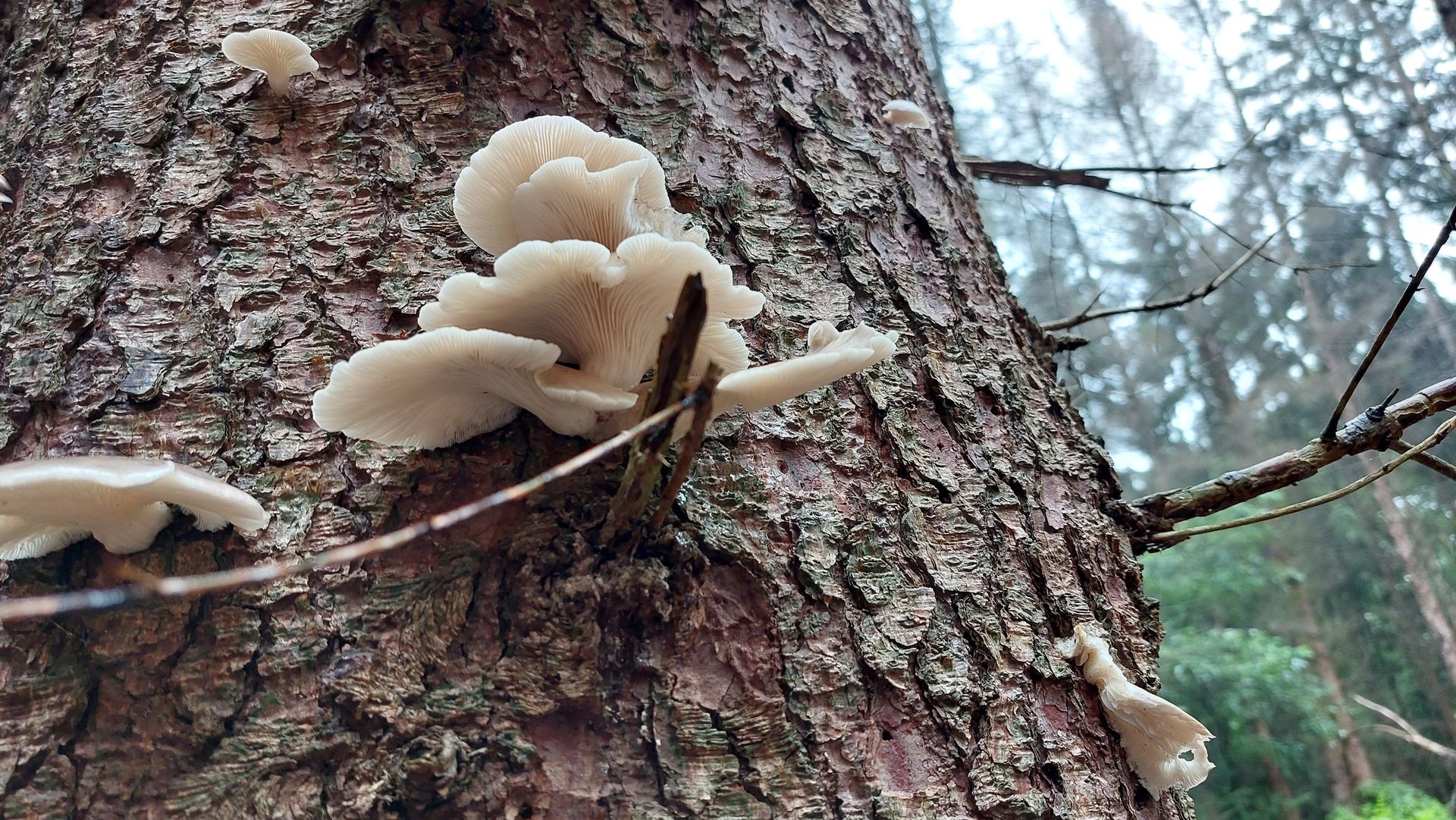 Seitlinge an Fichte