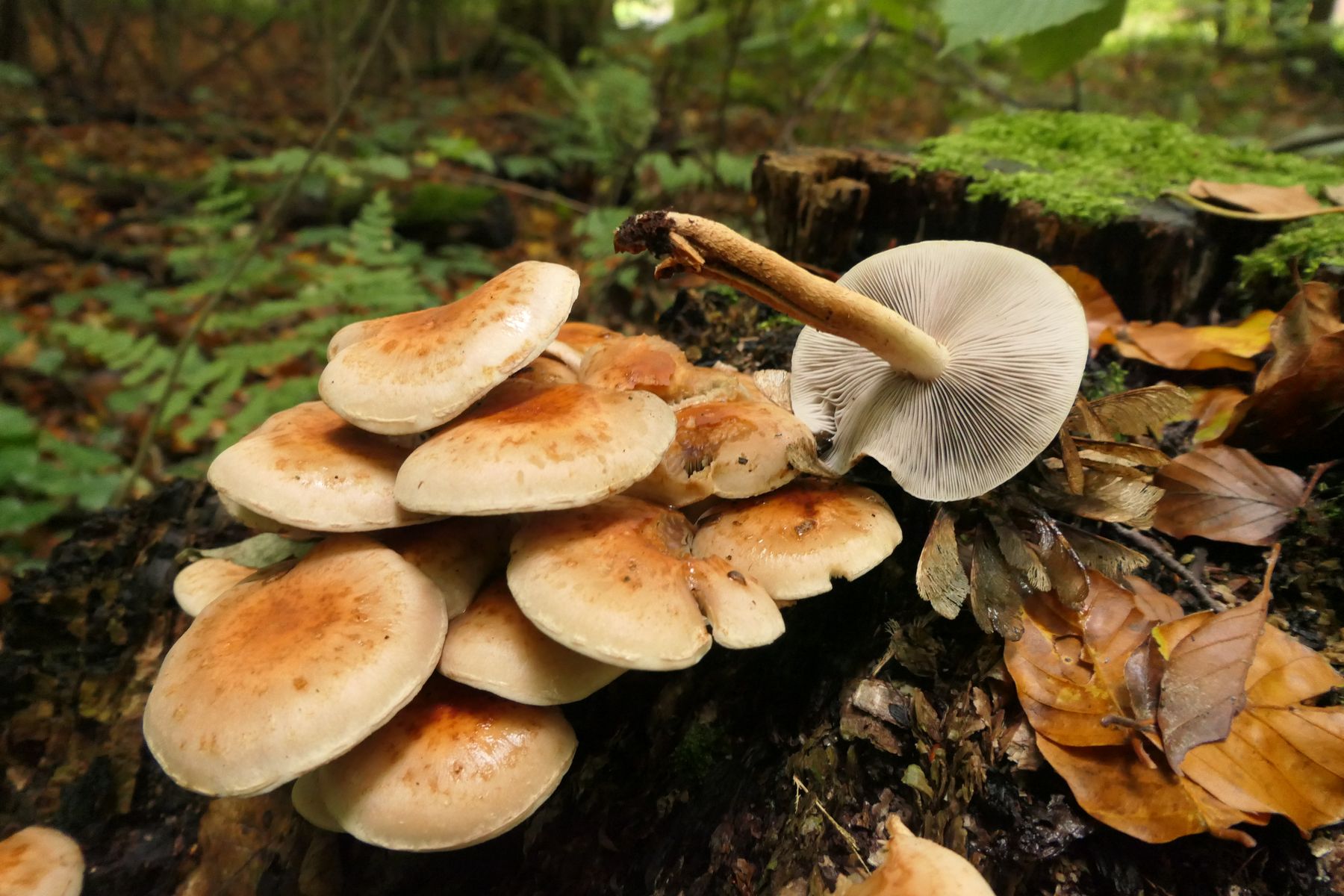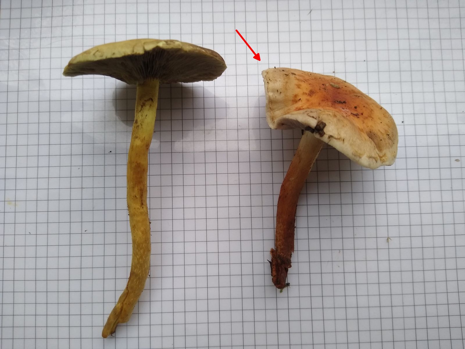 Bild 6 links Hyphloma fasciculare, rechts gesuchter Pilz