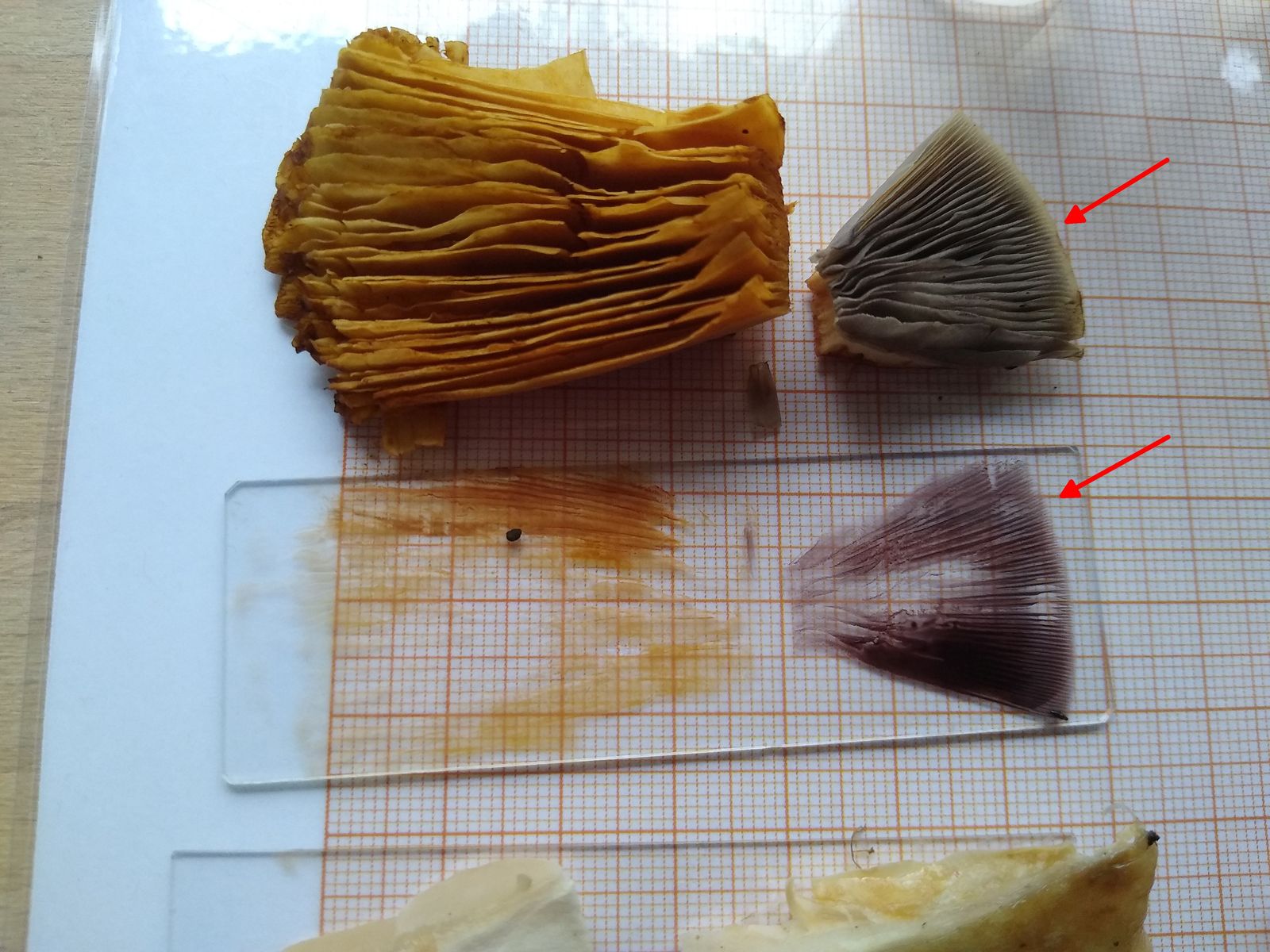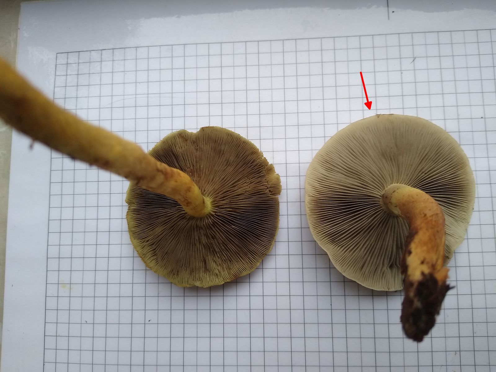 Mit dem plausiblen Ergebnis bin ich soweit zufrieden, da auch der Ziegelrote graue Lamellen hat - ich hatte ihn nicht auf dem Schirm - und die passenden Sporen.
