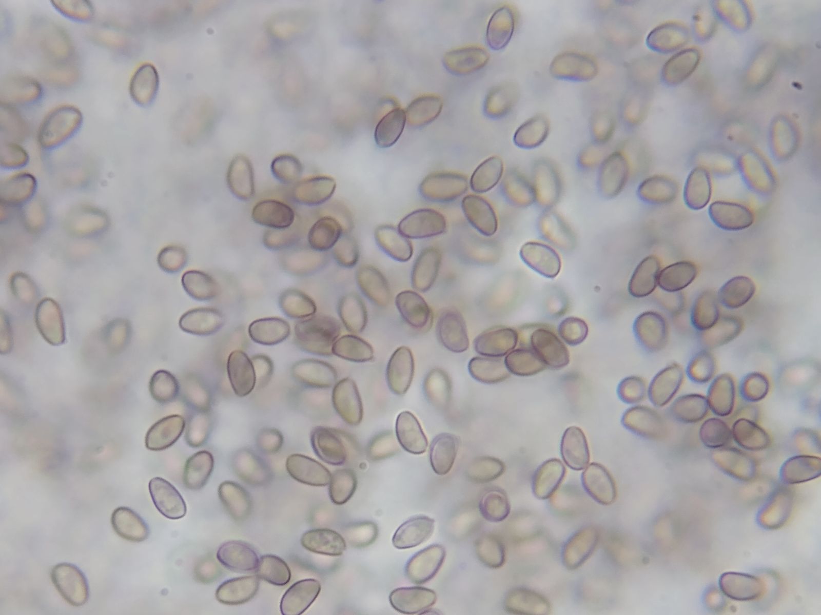 Bild 4 Sporen mit Keimporus; ich messe 6,0-7,0 x 3,5-3,7 µm