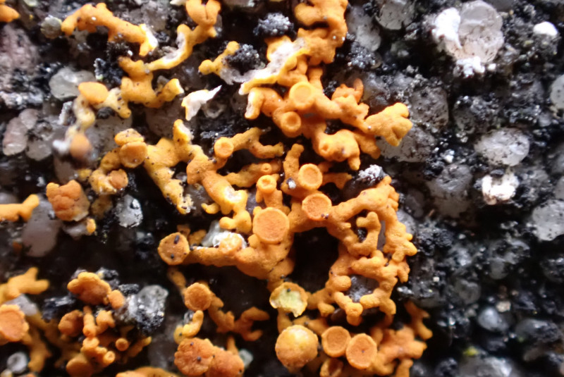 Aber dann, als ich das Haus umrundete, da standen sie auf einmal da, mehrere Dutzend Fruchtkörper. Ich vermute auch hier Arrhenia rickenii, mikroskopiert habe ich nicht. Allerdings hatte ich hier am und um das Haus noch nie andere als die Geröllnabelinge gefunden.