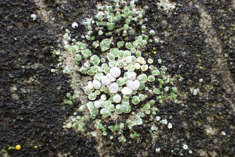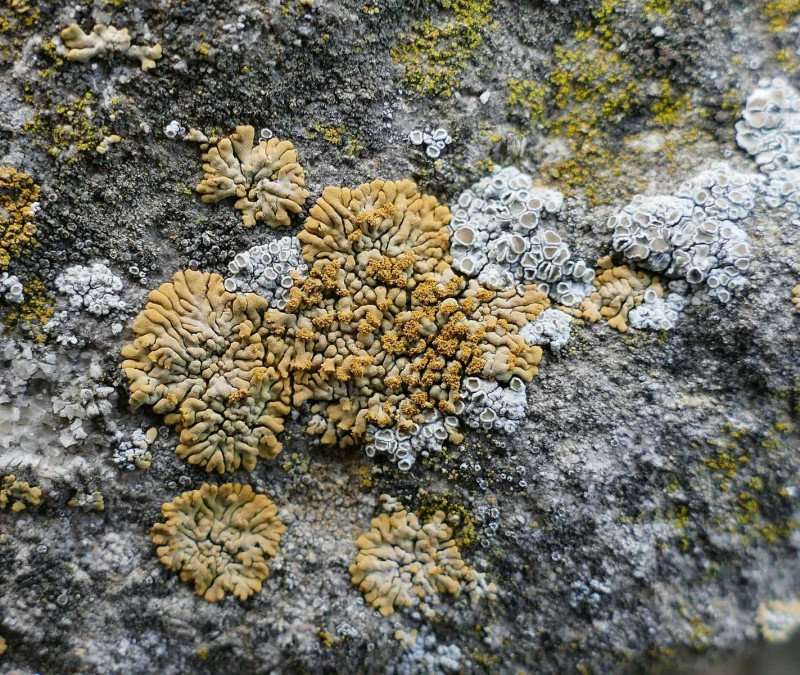 Auf der Mauer fand ich nur einen einzigen winzigen Pilz, merkwürdig, das Wetter sollte doch stimmen… Aber auch die Flechten finde ich immer wieder schön. Also holte ich meine Kamera und begann zu fotografieren, aber seht Euch die Bilder selbst an… am besten in voller Auflösung, also anklicken ☀️