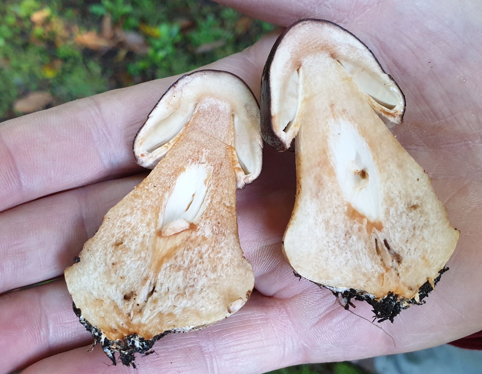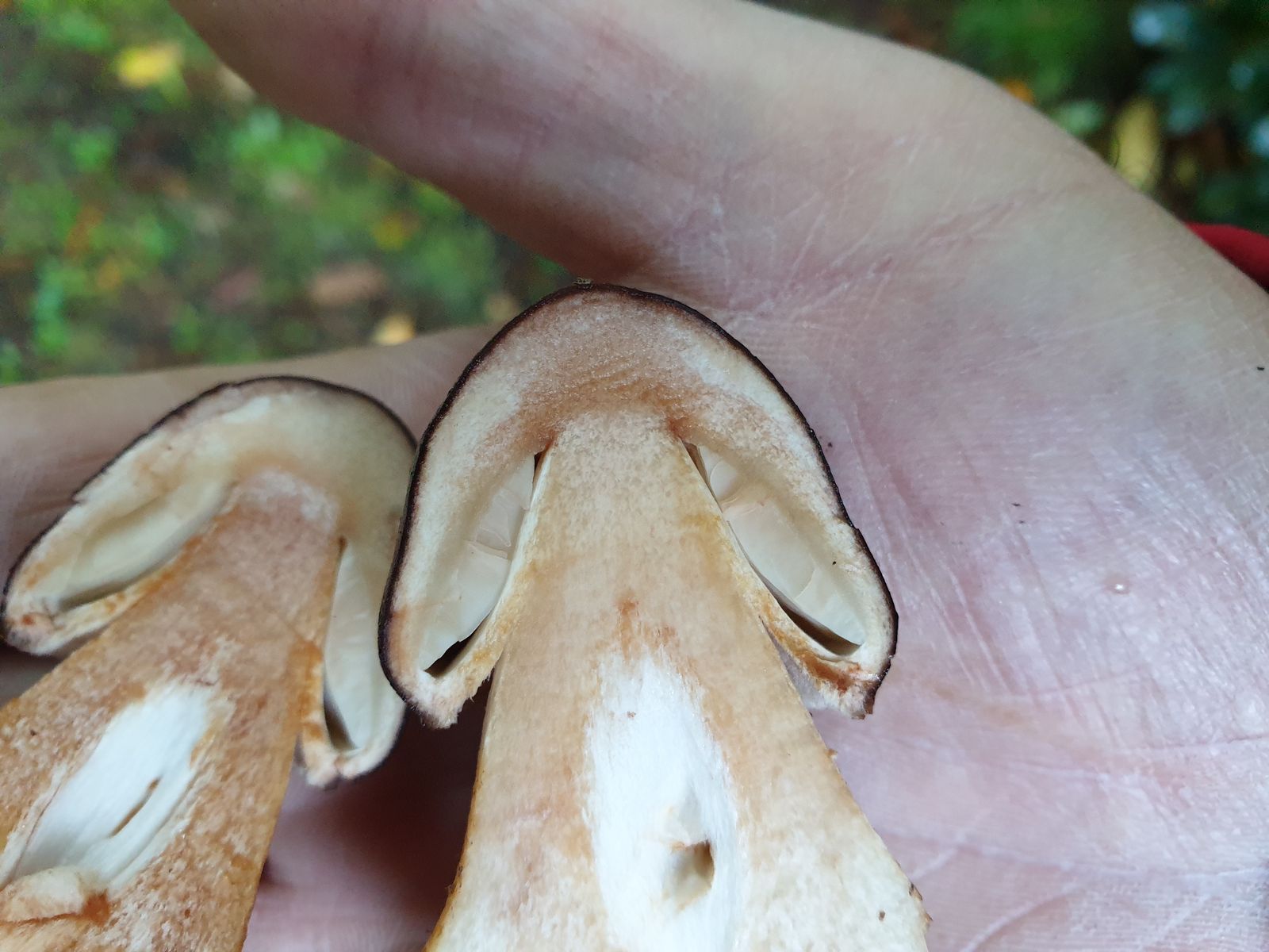 -im Anschnitt, aber auch am Stiel bei Berührung sofort orangebräunlich anlaufend