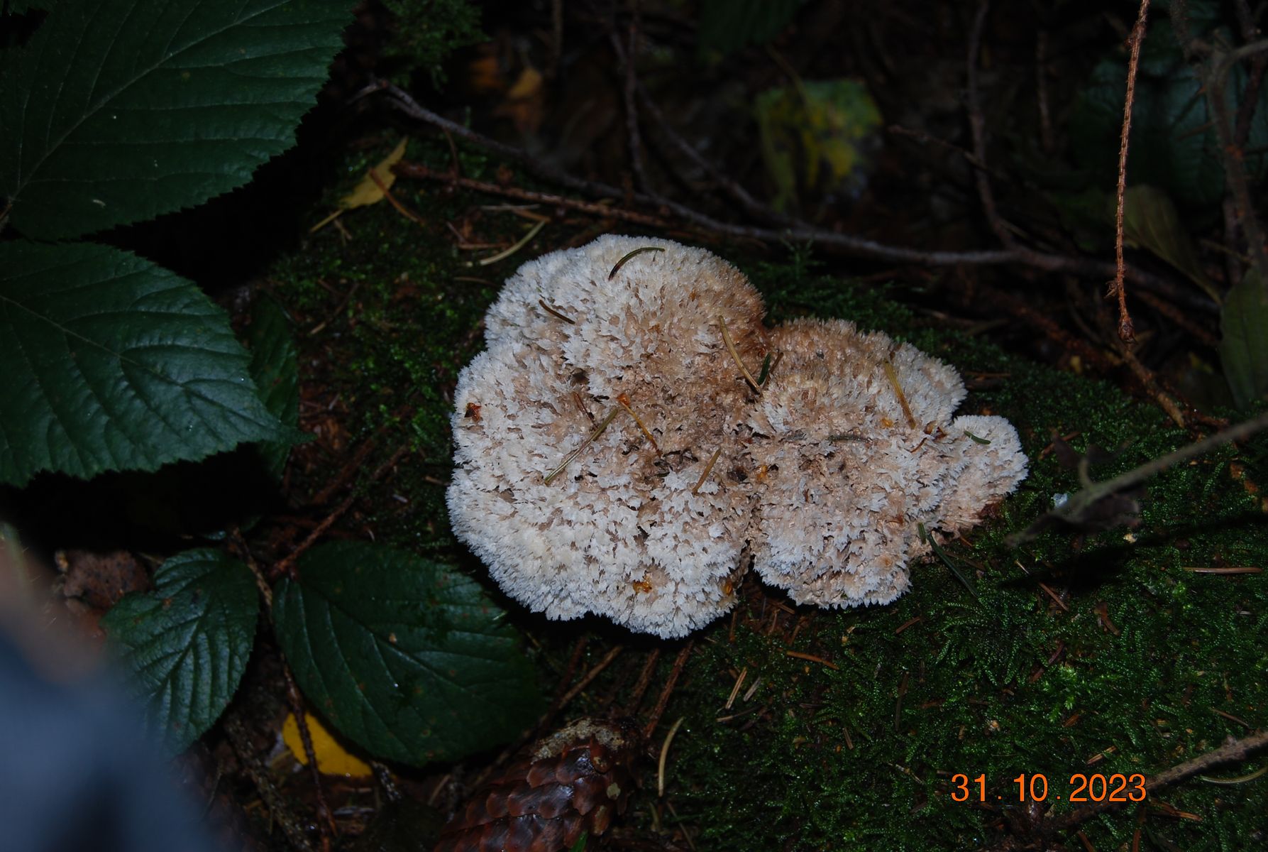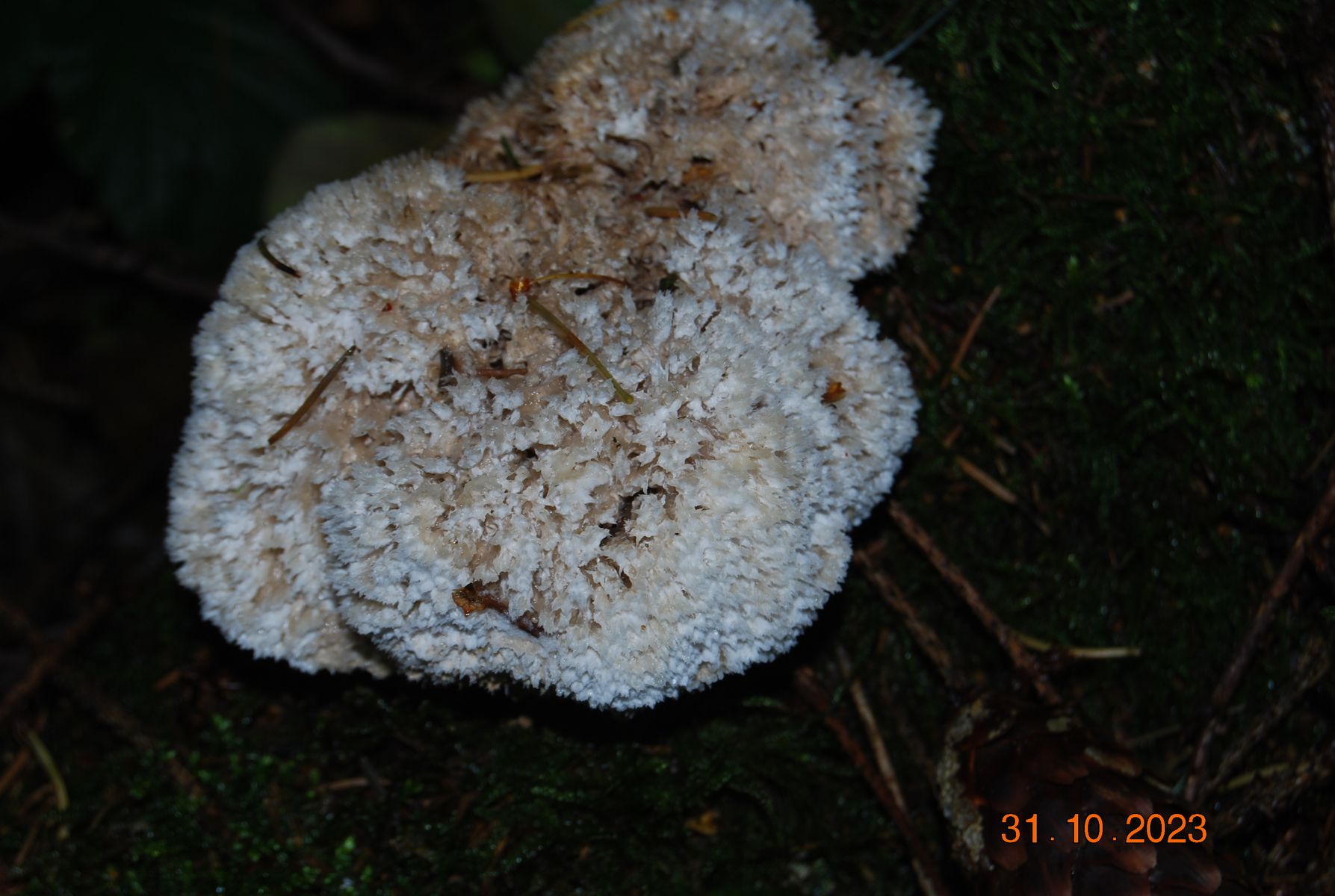 Ich hätte hier jetzt Postia ptychogaster, den Weißen Polsterpilz vermutet, als Anamorphe, denn die Fk.-Kissen sind sehr filzig zottelig, stellenweise schon etwas bräunlich werdend, und vermutlich in der Entwicklungsphase zur Hauptfruchtform. Oder sehen hier die Holzpilz-Experten/-innen womöglich irgendwas anderes?