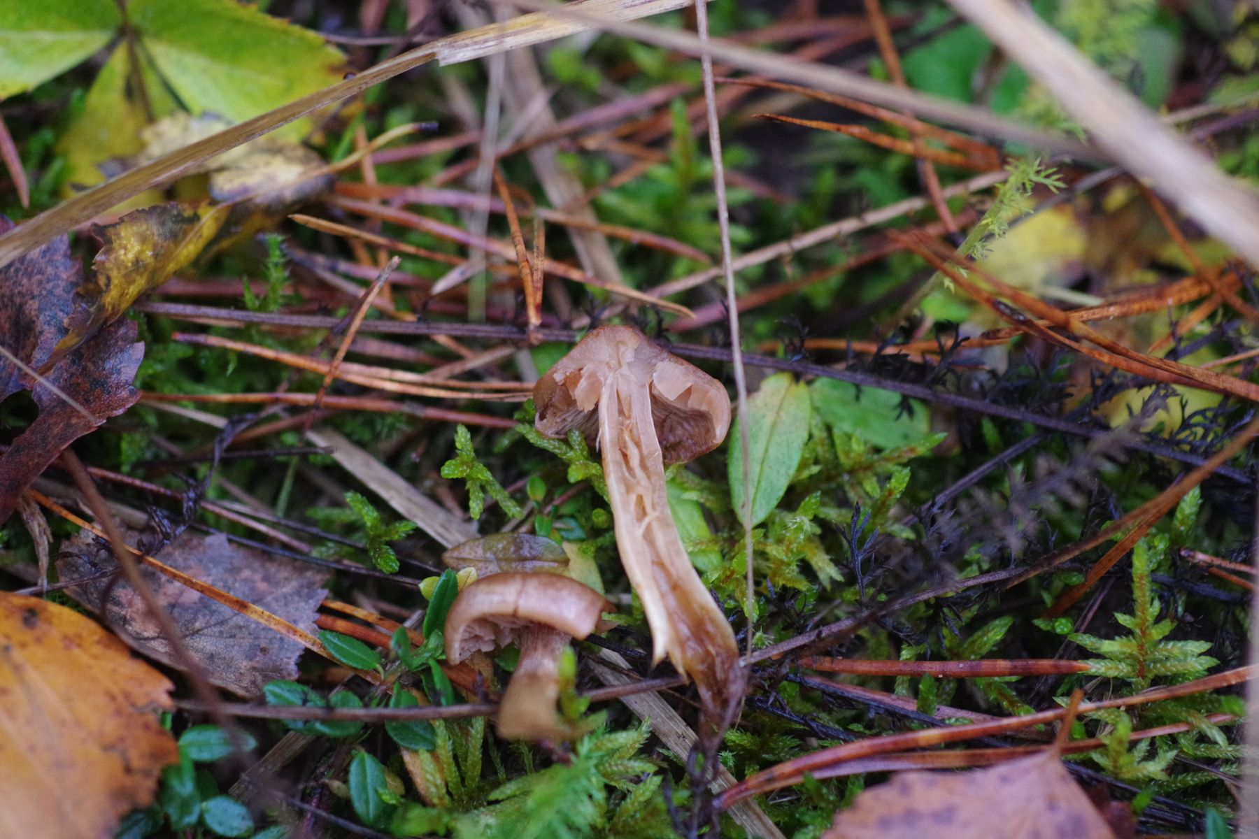 Helianthemum nummularium wird gelegentlich als Symbiont von Pilzen genannt. Und weil das Sonnenröschen hier nicht so selten ist und es in der Nähe ein größeres (~1 m2) und beständiges Fleckchen davon gibt, schaue ich da immer mal nach, ob es Pilze gibt. Heute bin ich fündig geworden. In der Nähe gibt es Kiefern und Birken, die sonst als Partner in Frage kämen, allerdings fand ich den Pilz nur inmitten des Sonnenröschenbestands in 2 Exemplaren. Allerdings scheint es da eine ganze Reihe von Cortinarien zu geben, die mit Helianthemum können - eine Publikation aus Großbritannien (Liimatainen, Ainsworth 2018) listet 15 Arten. Womit mein Plan, dass sich aus dem Symbiont eine einfache Bestimmung ergeben könnte, leider vereitelt ist. Und von dem Pilz selbst habe ich nicht viel Angaben, Geruch habe ich nichts Auffälliges bemerkt, keine Verkostung.