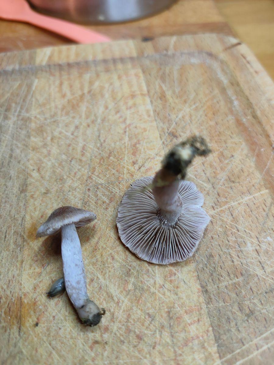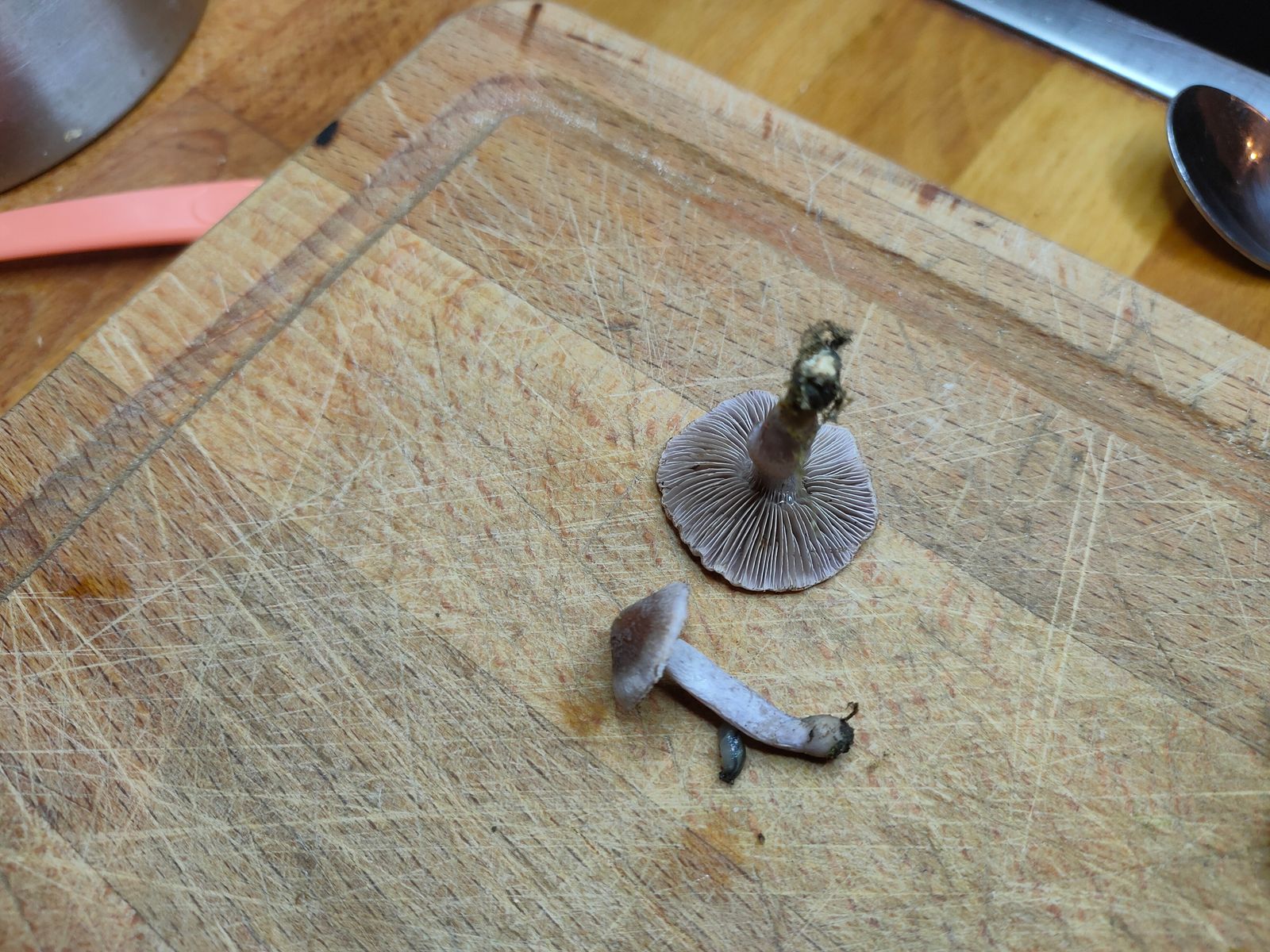 Wenn du noch eine hast, mach mal einen Sporenabdruck. Den Hut auf eine Glasplatte (Objektträger) oder weisses Papier legen und mit einem Becher abdecken, wenn möglich einen kleinen Luftspalt lassen.