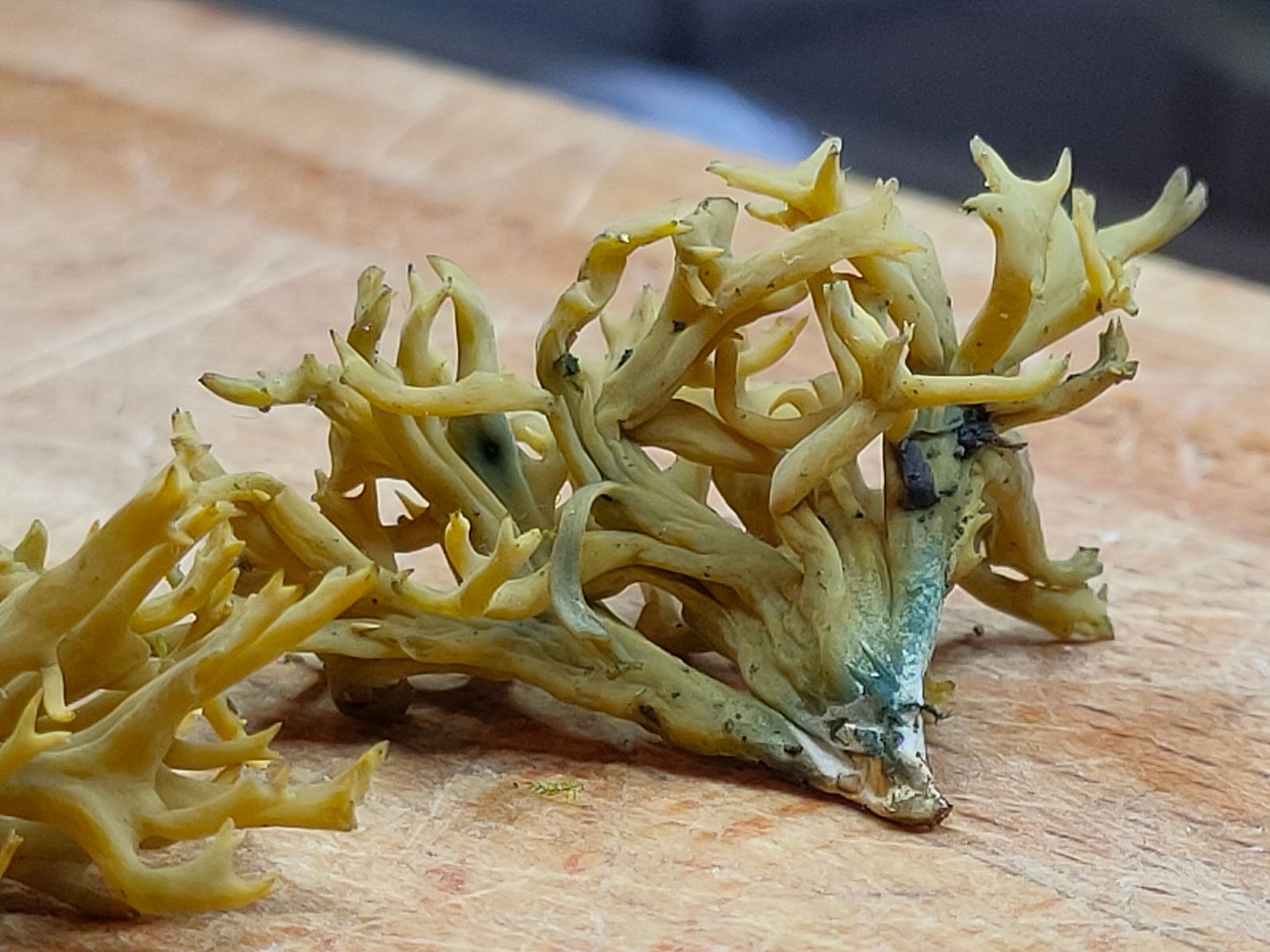 2. Wieder eine Koralle, diesmal blassgelb und mit recht kleinem Wuchs, 4-5 cm. Der Fundort war im Wurzelbereich einer Eiche. Der Geruch ist angenehm unauffällig.