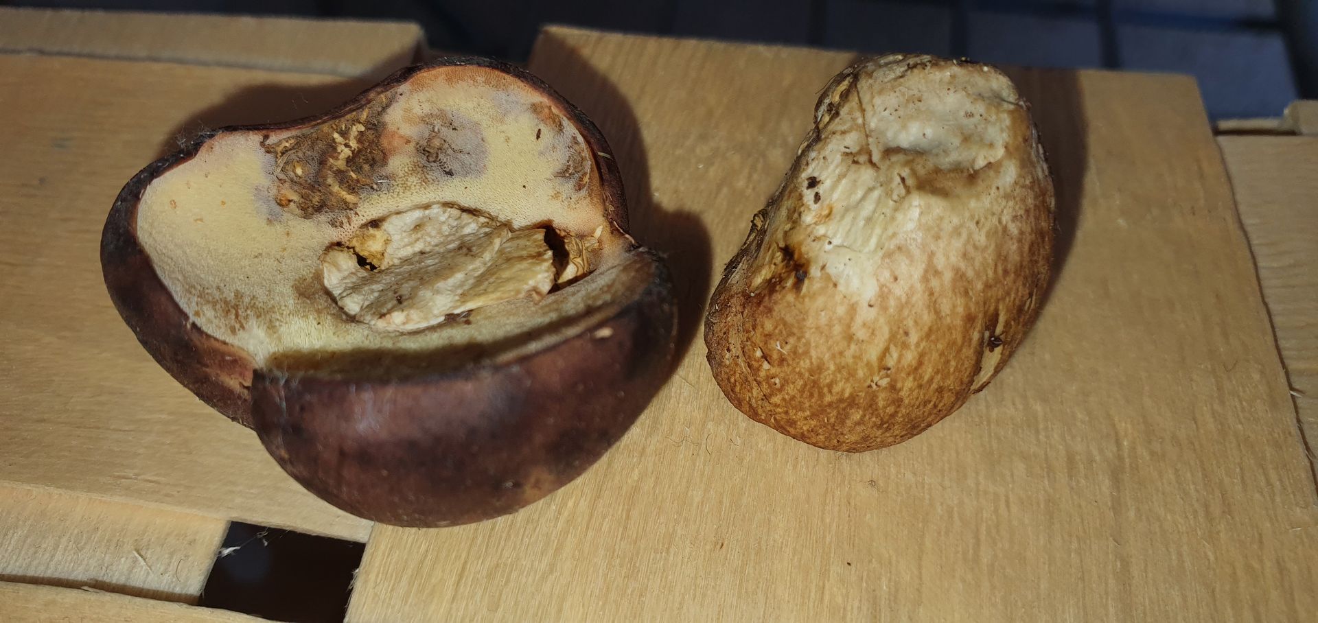 6) den Kollegen habe ich als verschimmelten Maronenröhrling identifiziert (wegen der Röhrenfarbe)