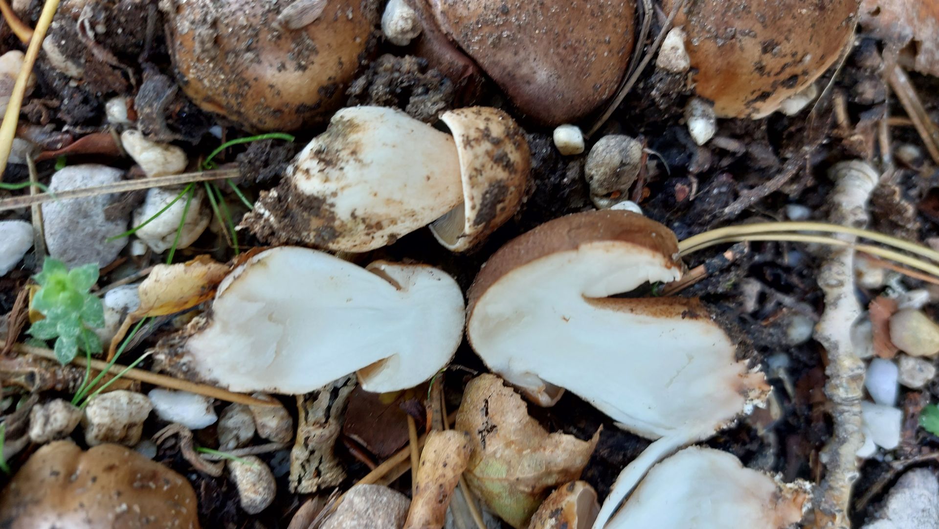 Anfang der Woche war ich in Rüsselheim und habe dort einen kleinen Spaziergang durch den Wald zwischen Rüsselsheim und der Autobahn unternommen. Neben vielen kleinen braunen Massenpilzen gab es u.a. Folgendes zu sehen. Es handelt sich um einen Laubwald mit einzelnen Kiefern auf sandigem Boden.