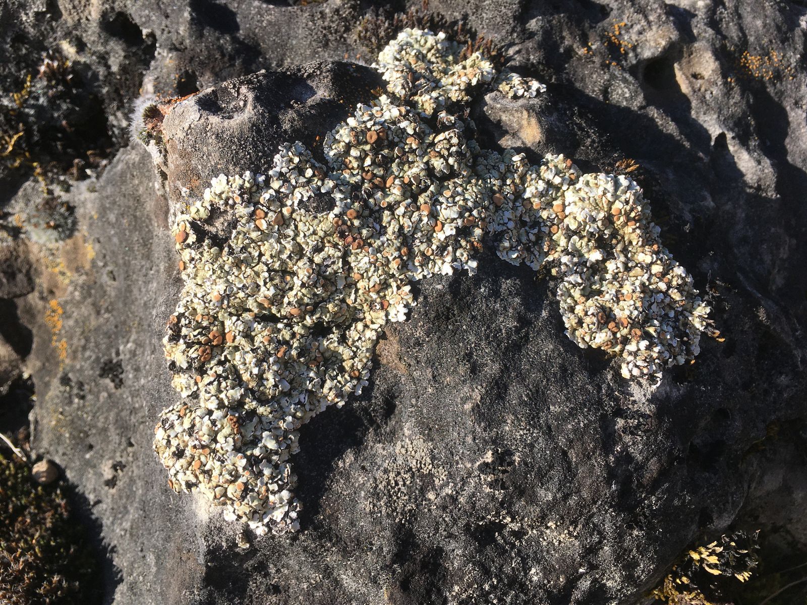letzens habe ich seit langer Zeit mal wieder eine Flechte eingesteckt. Sie lachte mich auf dem "Gipfel" eines Riffkalkfelsens im oberpfälzer Jura an und war so auffällig, dass ich einen Bestimmungsversuch wagen wollte. Der Standort war vollsonning, Wind-, Regen- und Schnee- exponiert. Ein Flechten Wellnessort also...