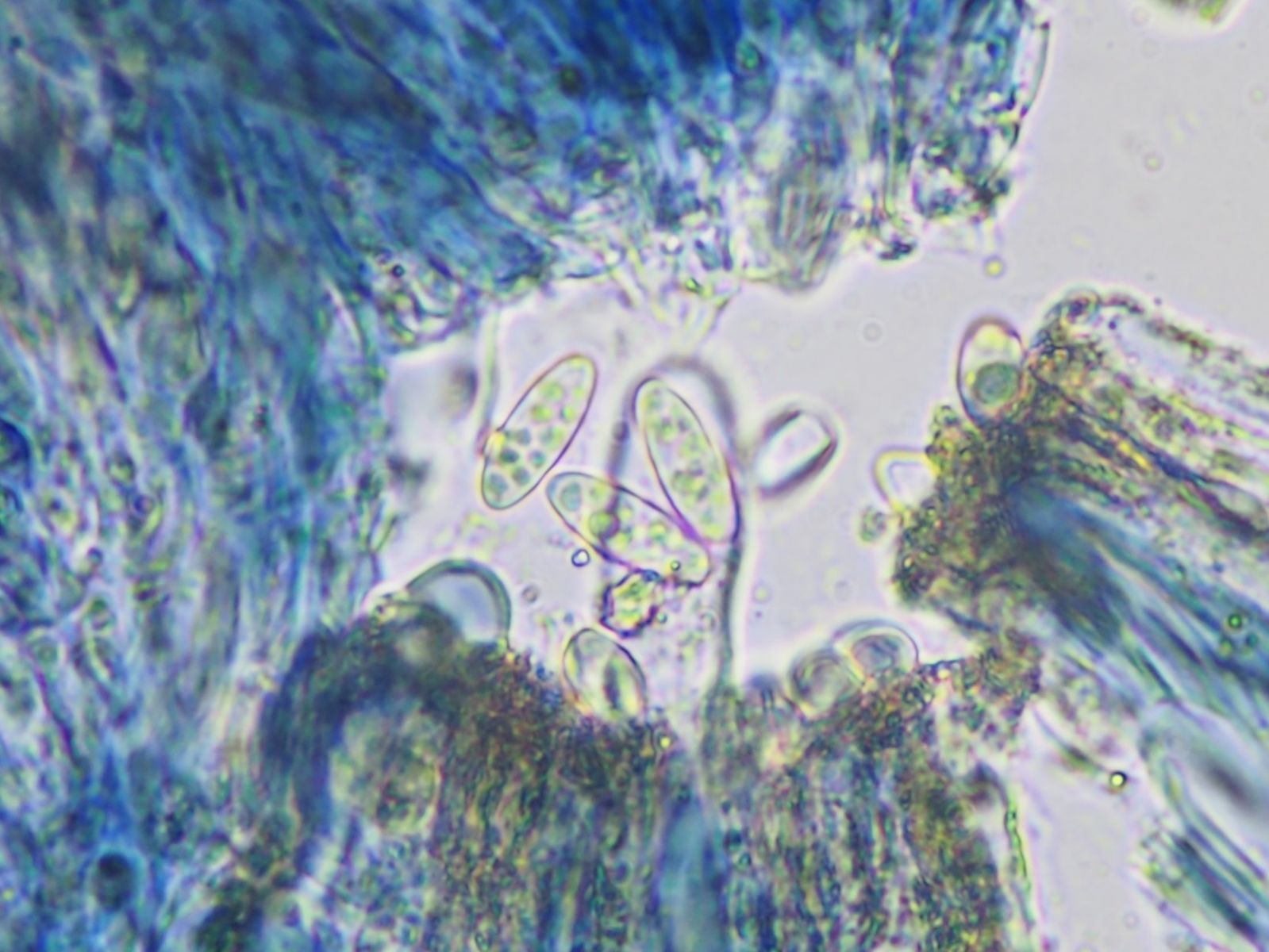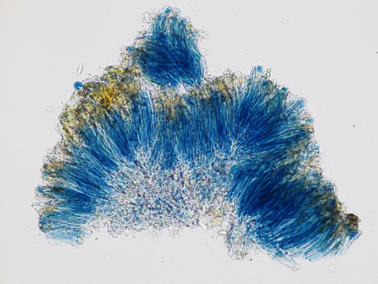 Richtig bunt wirds mit Lugol, da färbt sich das gesamte Hymenium blau: