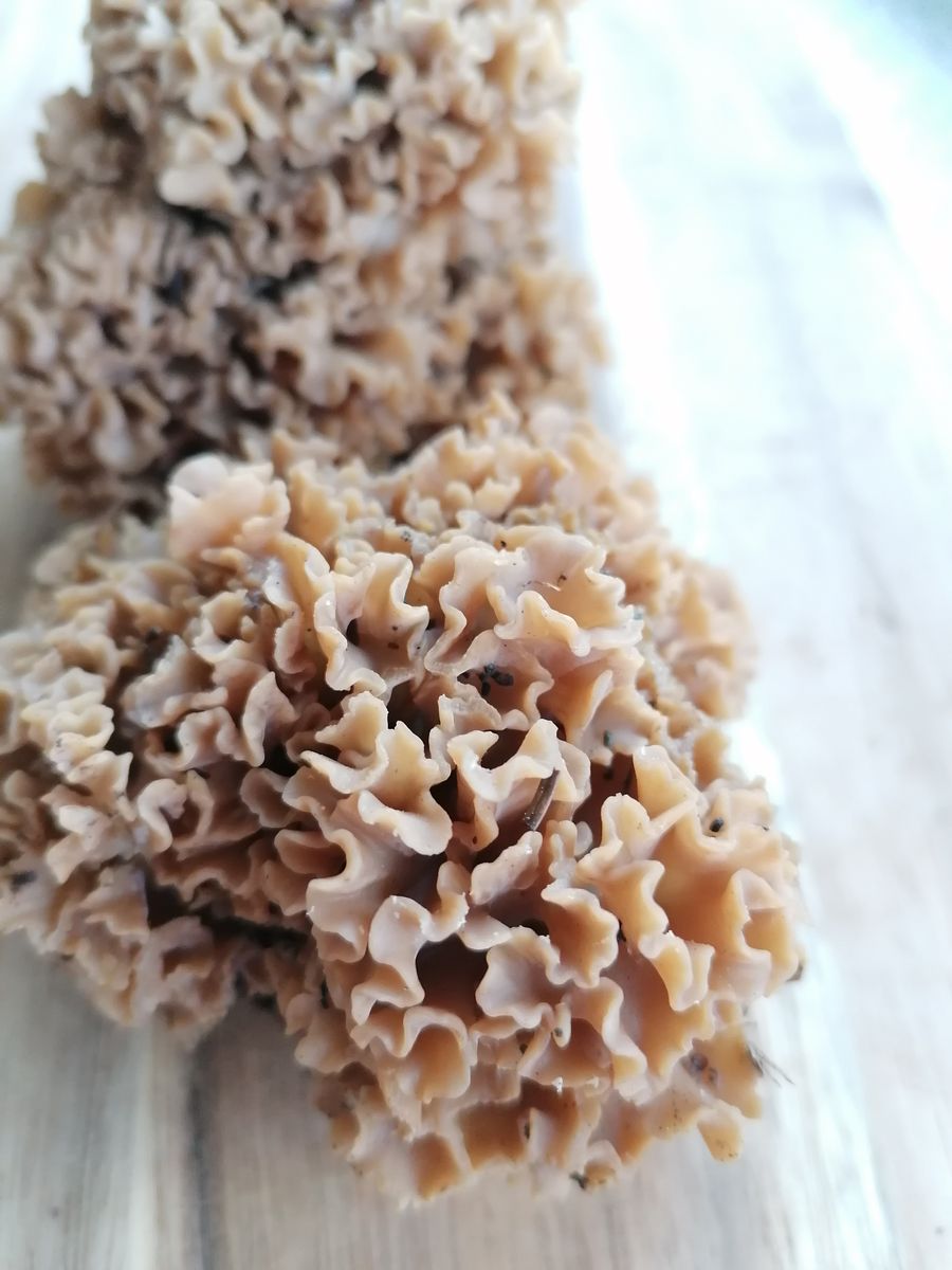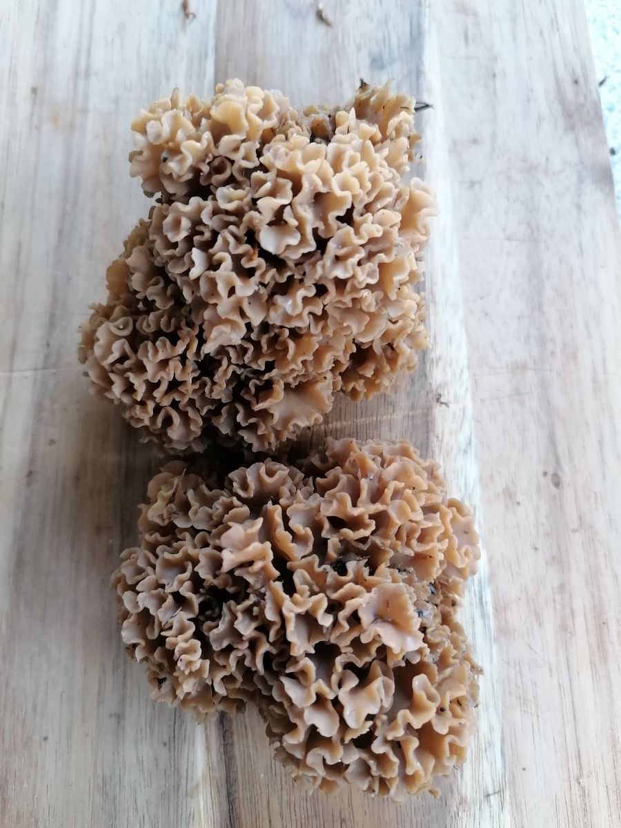 Ich sammle seit ein paar Jahren Krause Glucken. Natürlich nur frische, helle Exemplare. Nun habe ich heute auf einem Baumstamm an dem ich letztes Jahr bereits eine Glucke gefunden habe, mehrere kleine Exemplare (ca. 5) entdeckt. Allerdings sind diese nicht wie sonst hell, sondern richtig dunkel. Größe pro Fruchtkörper ca. 15cm.