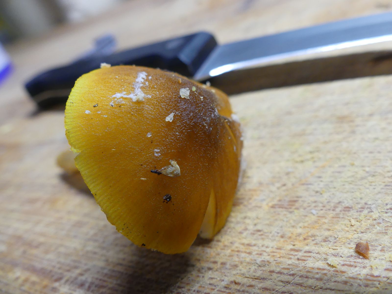 Dieses Einzelexemplar mit ca. 4 cm Hutdurchmesser habe ich heute im Eichen-Buchen-Mischwald auf einem stark vermulmten Holzstück gefunden. Wegen der freien Lamellen dachte ich an einen Dachpilz. Wenn ich mir dann die Kandidaten dieser Gattung anschaue, dürfte der Löwengelbe Dachpilz am ehesten in Betracht kommen. Passt das oder bin ich in der falschen Gattung unterwegs? Geruch unauffällig, Geschmack nicht geprüft.