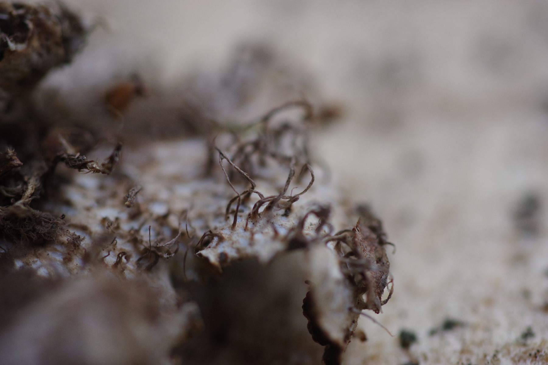 gestern konnte ich auf einer bemoosten, liegenden Esche eine Peltigera finden, die sich deutlich von der gleich daneben befindlichen P. praetextata unterschied. Die Lappen nur etwa halb so groß, keine Isidien auf der Oberfläche, keine Apothecien trotz erheblicher Ausdehnung, Knubbel an den Lappenkanten, die ich als Bortensorale ansehe. allerdings sind die nicht grau, wie in der Literatur meist angegeben und auch nicht durchgehend. Unterseits sind die Adern erkennbar, aber nicht sehr erhaben und ockerfarben. Die Rhizinen sind einfach, bis 4...5 mm lang.