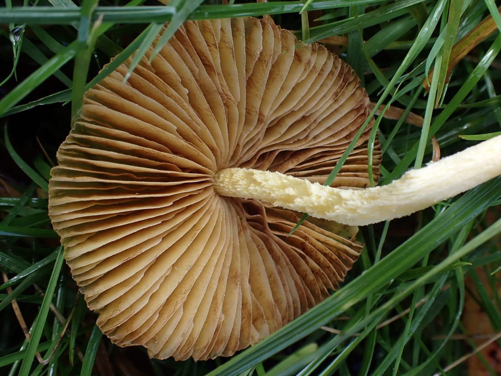 Nachdem ich erst einmal Pilz auf Pferdemist gegoogelt hatte, hatte ich mir als Arbeitsnamen den Schiefporigen Träuschling notiert, der jedoch einen beringten Stiel hat. Durch den urlaubsbedingten Verzug beim Lesen der Forumsbeiträge war ich noch nicht dazu gekommen, mich eingehender mit einigen Neuentdeckungen zu beschäftigen.