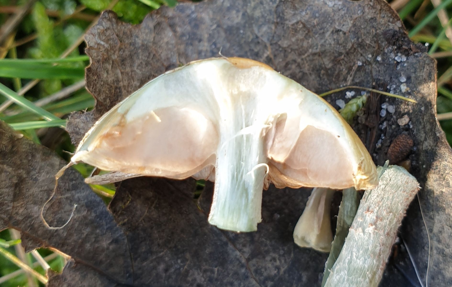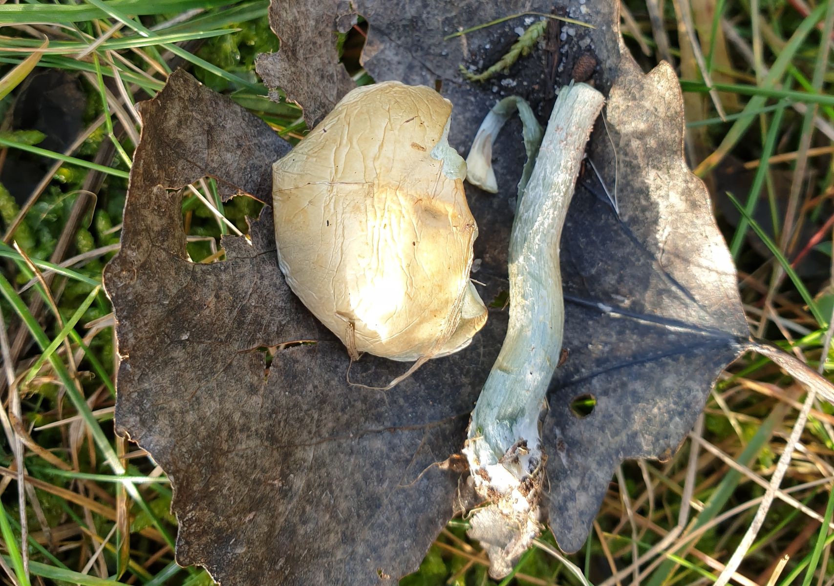 Stielinneres hohl, Stielfleisch ebenfalls blaugrün