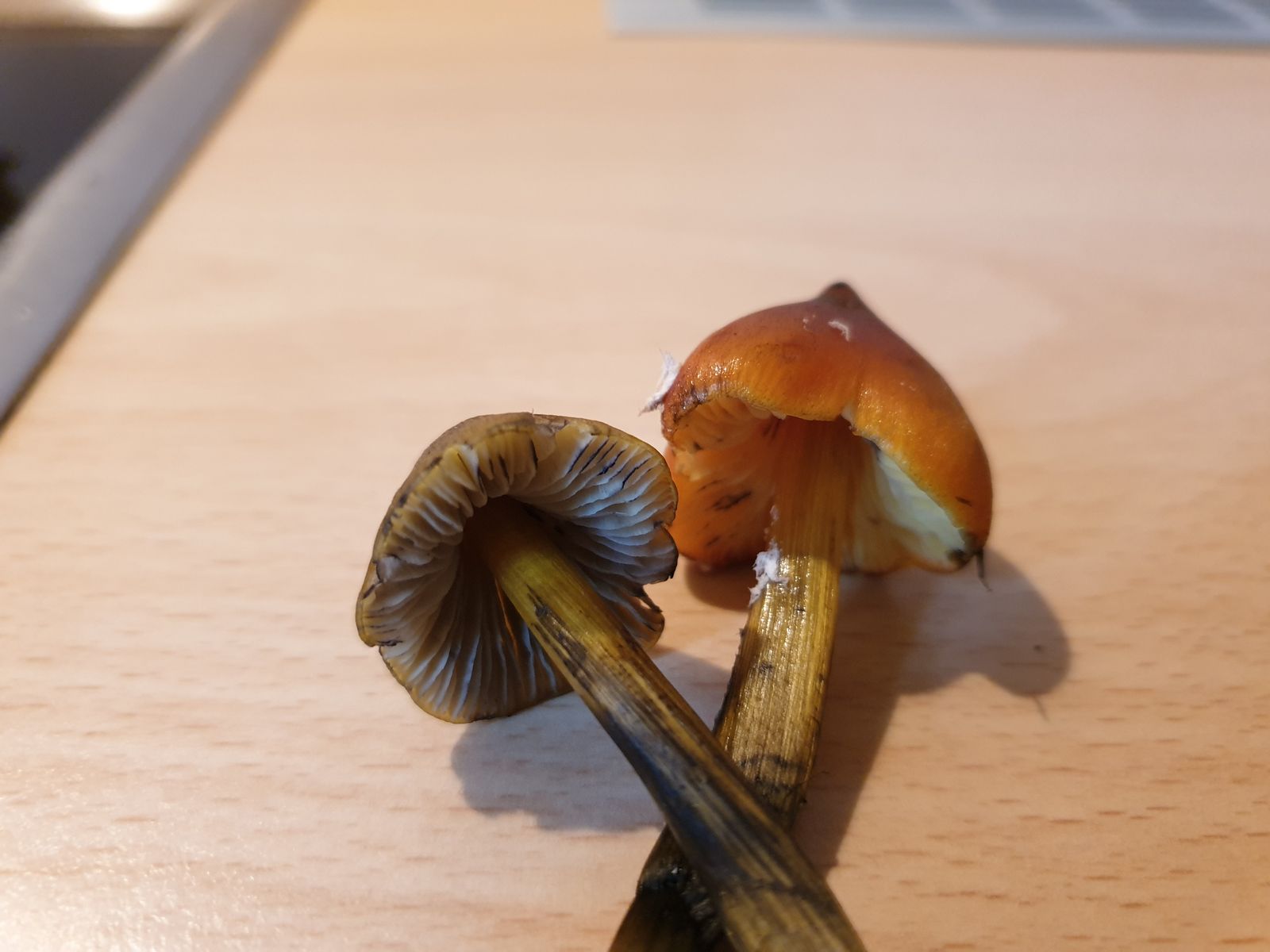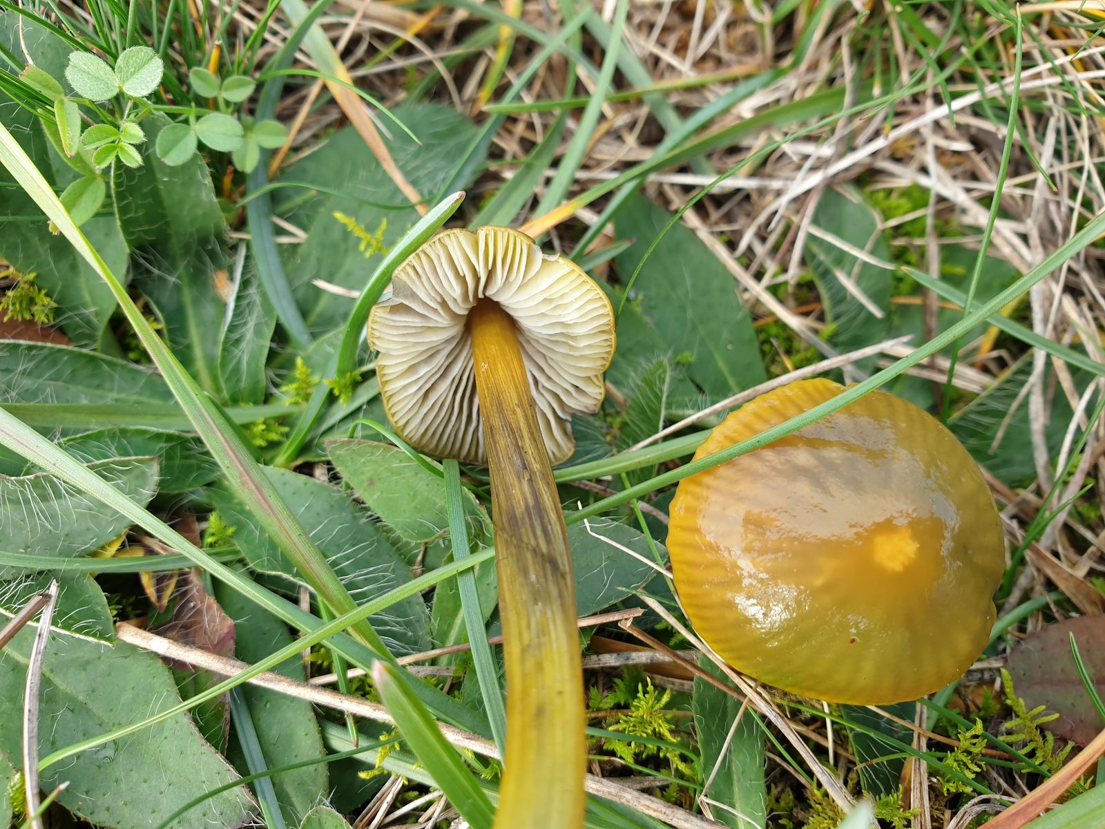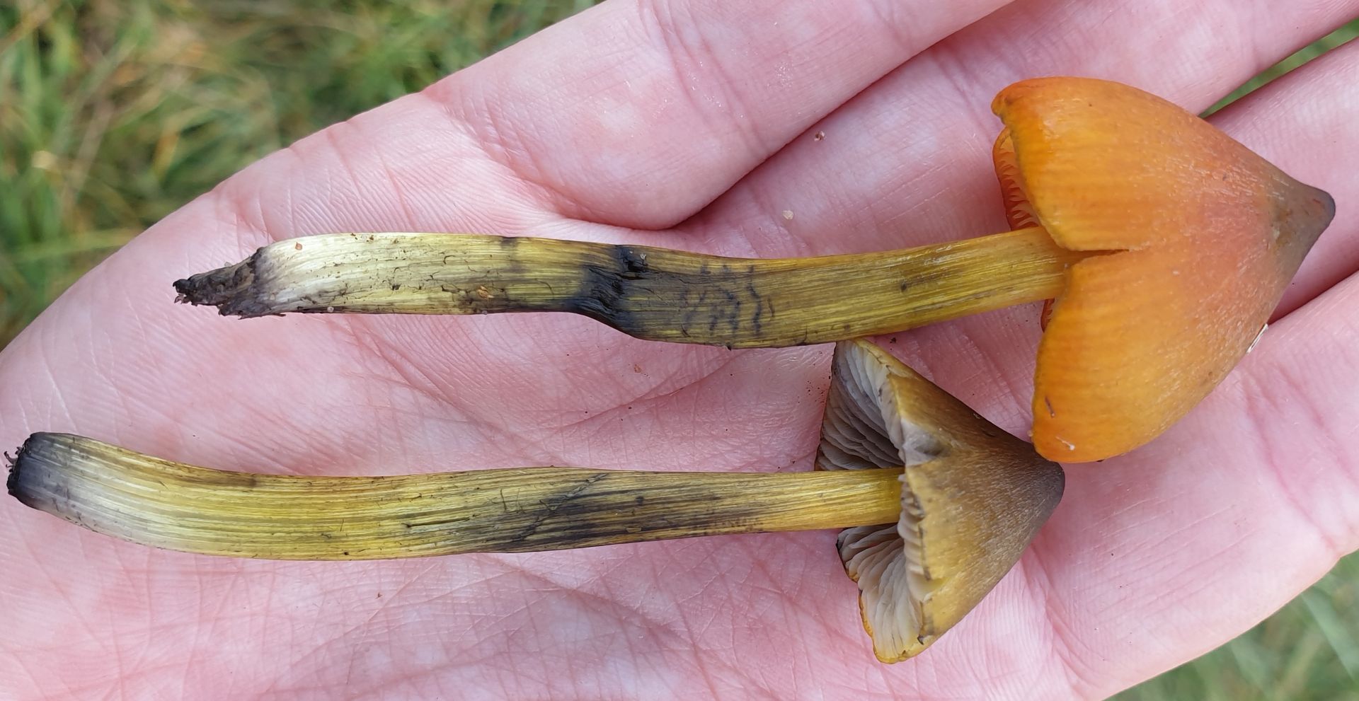 diese Saftlinge standen zahlreich auf einer Magerwiese, einmal in gelb-orange, einmal in grün. Beide schwärzen recht schnell bei Berührung, insbesondere am Stiel, aber auch etwas am Hut und in den Lamellen. Könnte es sich bei beiden um dieselbe Art handeln, bloß mit anderer Farbgebung? Oder haltet ihr sie für zwei verschiedene Arten?
