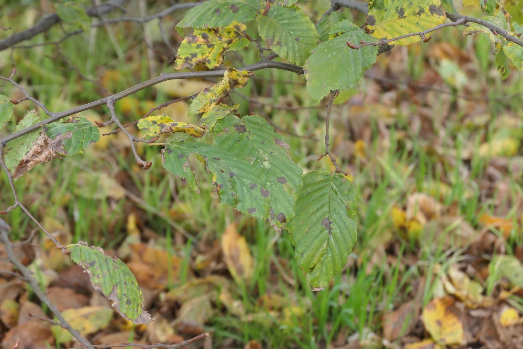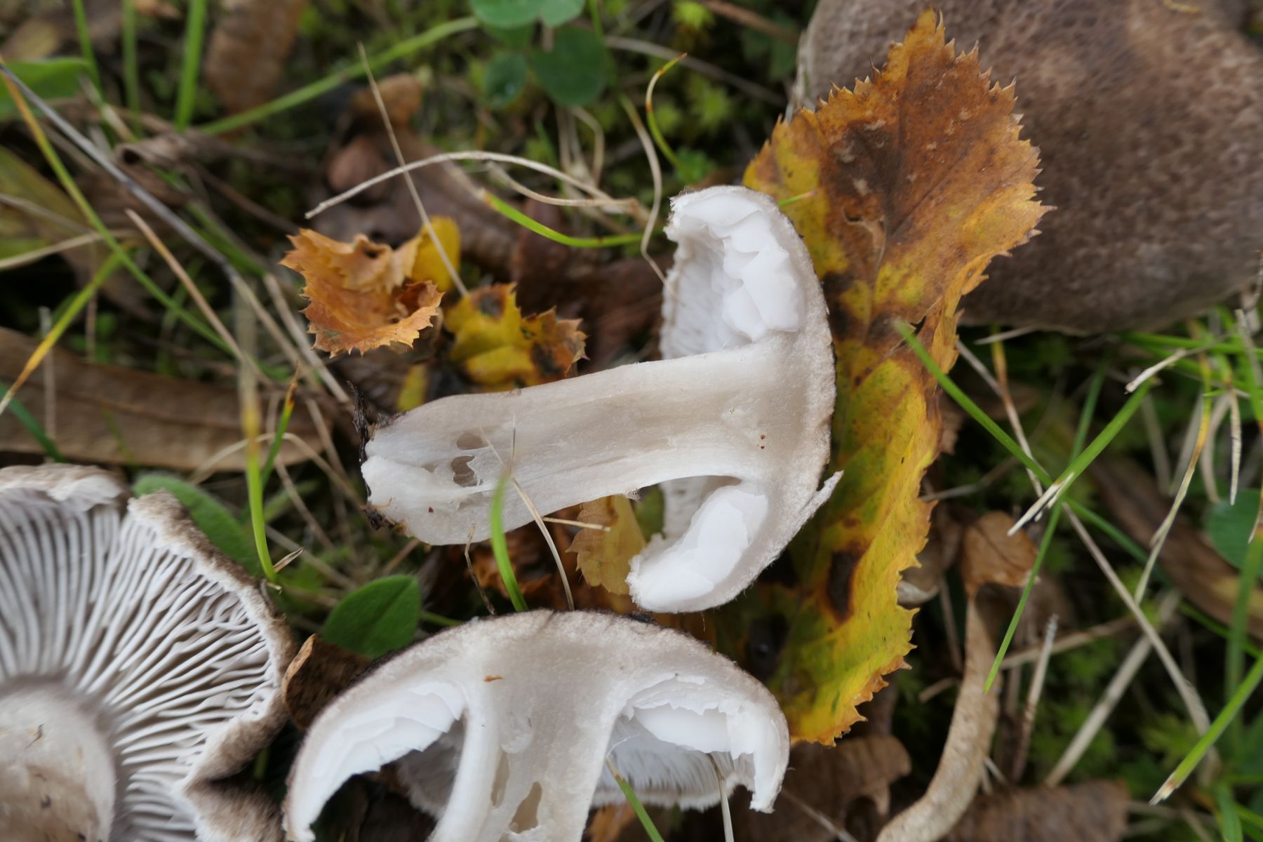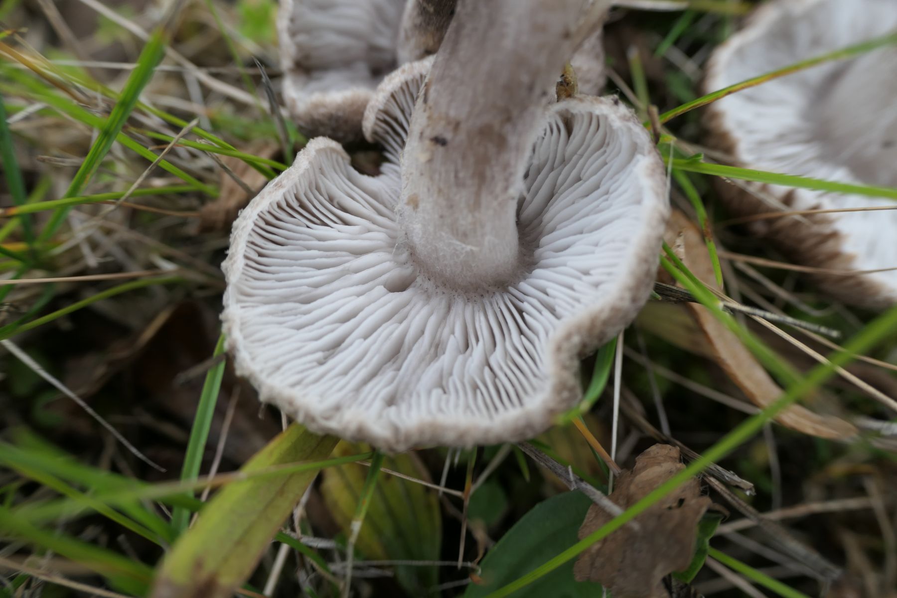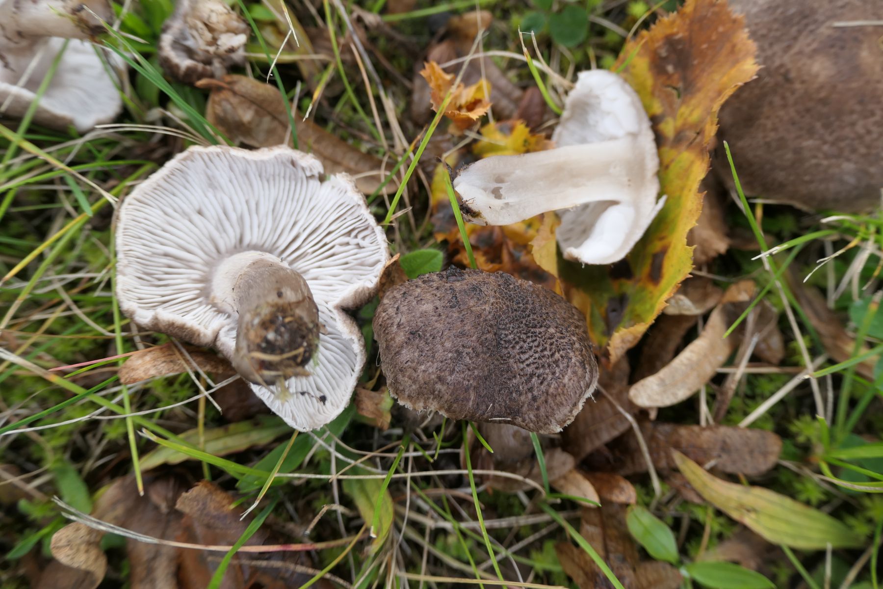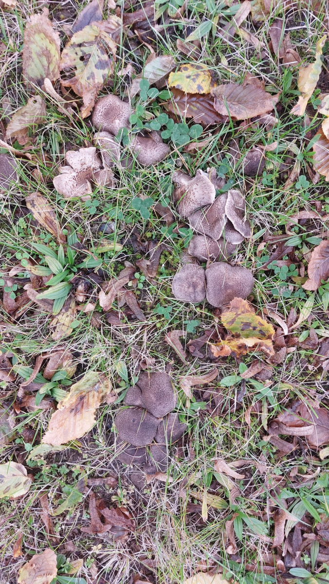 am Straßenrand in einem Grünstreifen zwischen Bürgersteig und Parkplatz habe ich diese Pilze gefunden. Es steht dort nur ein Hainbuchenstrauch. Es wachsen irgendwelche Bodendecker, Gras und Kräuter.