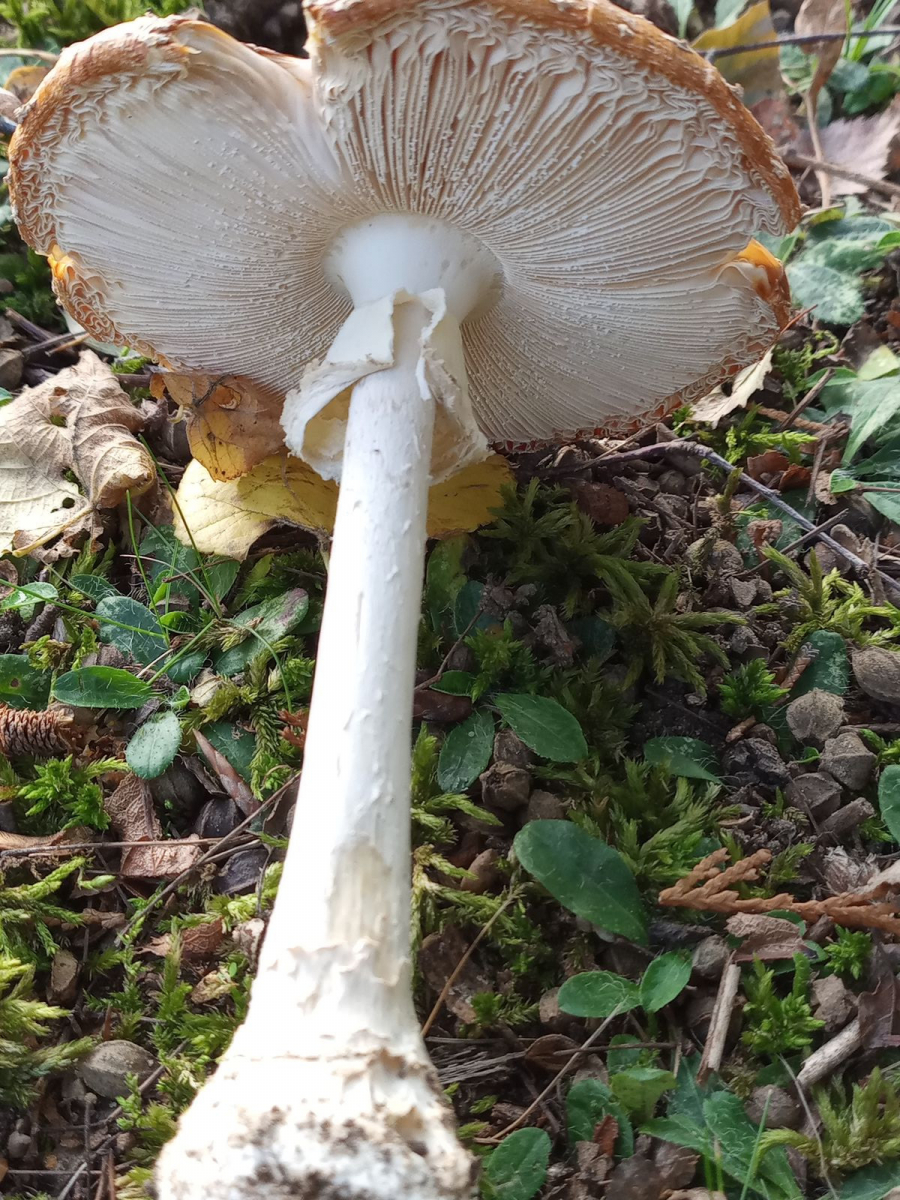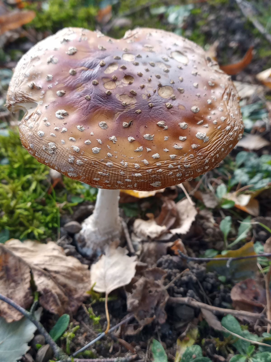 heute fand ich in Park unter Birke Fruchtkörper, bei denen ich Amanita regalis vermute. Es gab nur 2, der ältere hatte den Hut schon etwas verschrumpelt. Der jüngere war knackfrisch, ich habe ihn stehen gelassen. Leider gibt es nur 3 Bilder. Verwechslungspartner wäre A. pantherina, den ich für kenne und deshalb ausschließe. A. muscaria kenne ich nur in rotem Farbspektrum. Kann der königliche hinkommen oder gibt es andere Ideen?