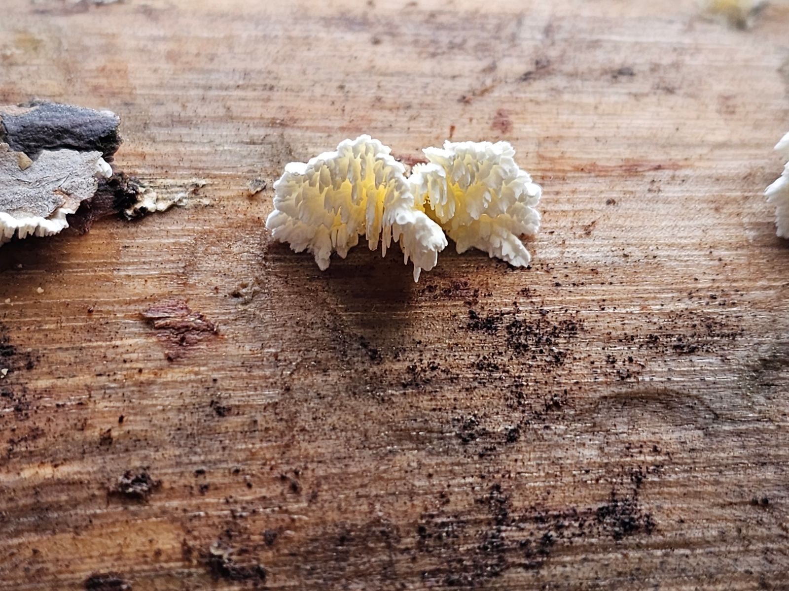 Ich will mir jetzt ab und zu auch ein paar Aphyllophorales anschauen. Der hier ist typisch für Kiefernwälder: Irpicodon pendulus.