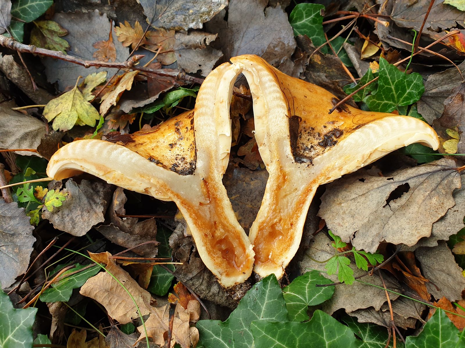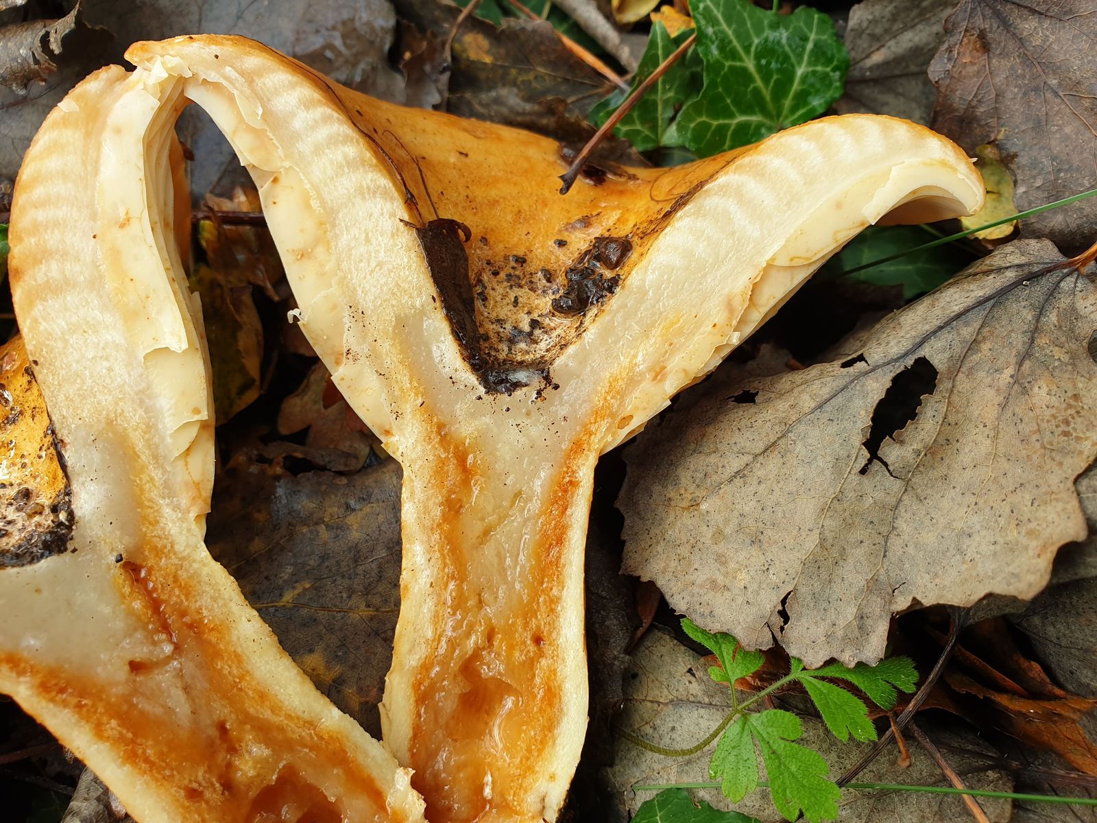 Zunächst hielt ich beides für dieselbe Art, deshalb habe ich leider nur von einem ein Schnittbild + Geschmacksprobe gemacht.