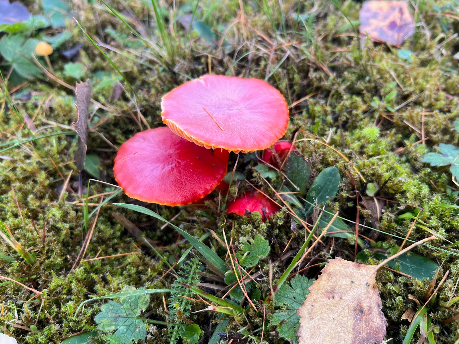 7. Die hübschen roten Pilze wollte ich nicht durchschneiden. Daher bin ich unsicher, ob es sich um Kirschrote oder Prächtige Saftlinge handelt.