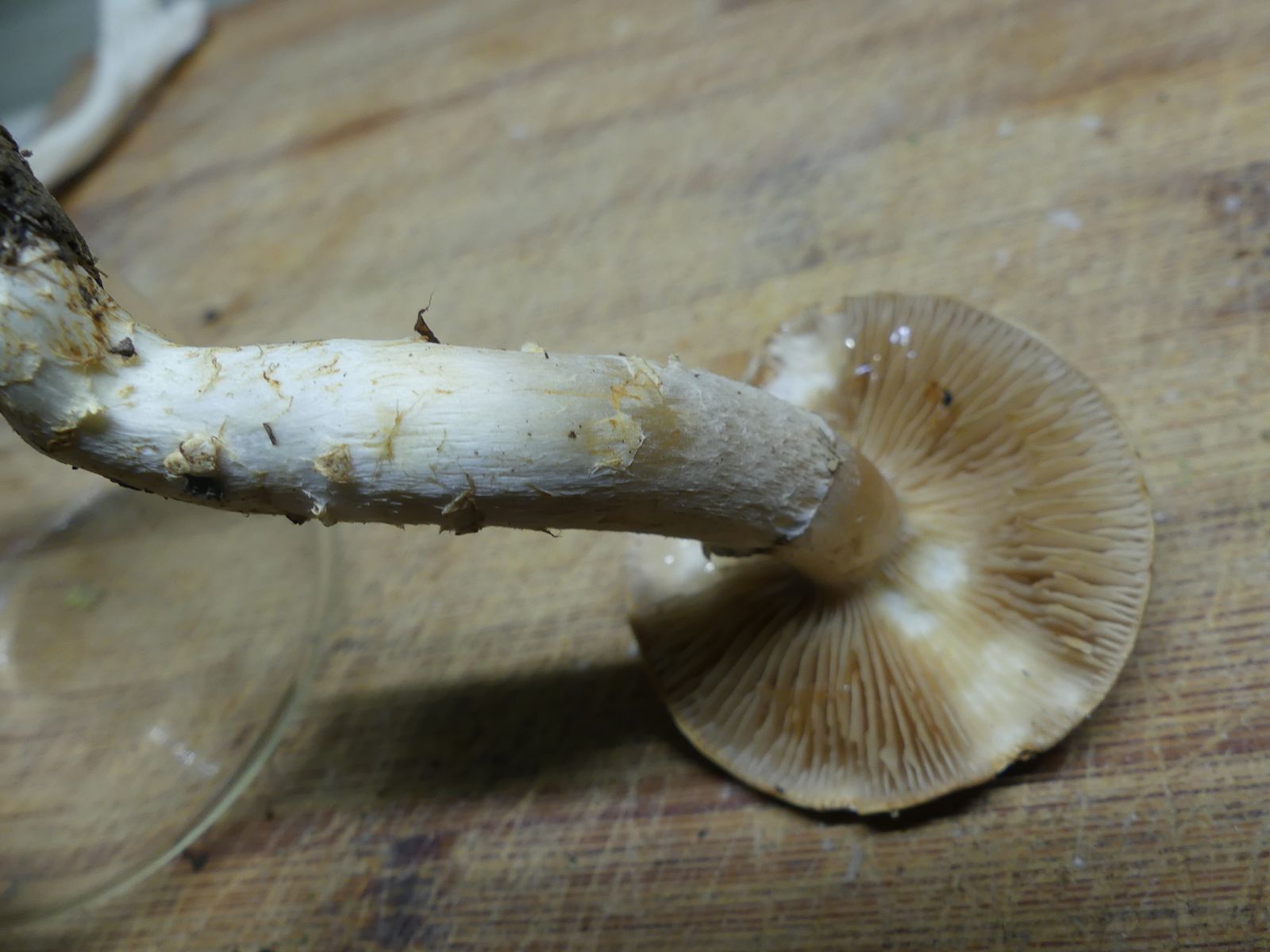 Auch konnte ich keinerlei Holzreste bei dem Fundort finden, der Fruchtkörper wurzelte im Erdboden. Nach meinen bisherigen Erfahrungen in dieser Gattung wachsen die auch gerne gesellig bis büschelig. Das Exemplar von letzter Woche war ebenfalls ein einzelner Fruchtkörper.