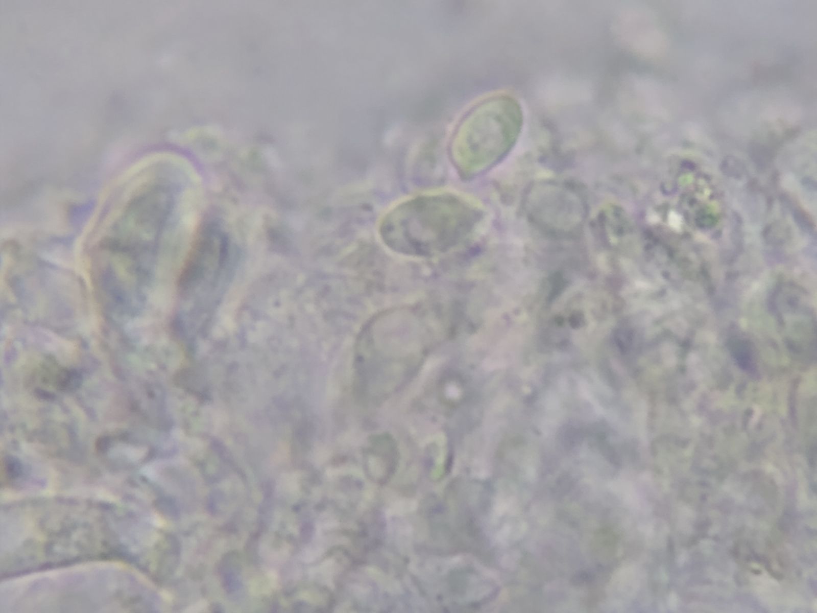 Sporen sind kaum zu finden, der Fruchtkörper ist über seine beste Zeit hinaus.