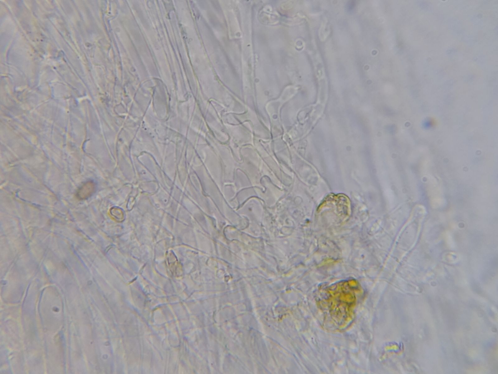 Die Hyphen der Huthaut haben eine Dicke von bis zu 12 µm.