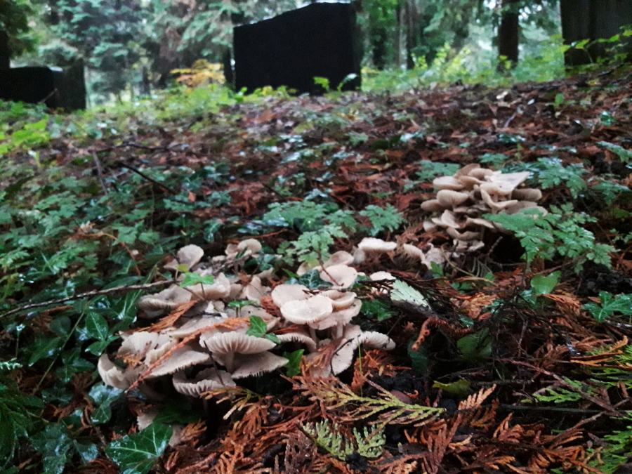 Und wenn man so von Pilz zu Pilz springt, hat man sich dann auf dem Friedhof verlaufen. Die Hunde freuten sich sehr, als ich wieder auftauchte.