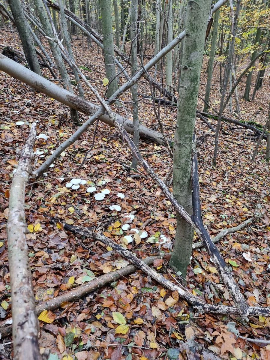diese stattliche Kultur habe ich bereits am Freitag gefunden. In der Nähe wuchsen auch ein paar sehr leckere Mönchsköpfe und etliche Nebelkappen. Mich hat da schon der halbkugelige und schneeweiße Hut sehr irritiert, weshalb ich heute in der Mittagspause mir noch einmal die Stelle angeschaut habe. Anbei findet ihr ein paar Bilder. Geruch würde ich als Lackartig bezeichnen, so wie ich es sonst auch von den Trichterlingen her kenne. Sonst finde ich die Kollegen aber nur vereinzelt im Laubwald und mir fehlt komplett dieser glasige Ton mit auf dem Hut.