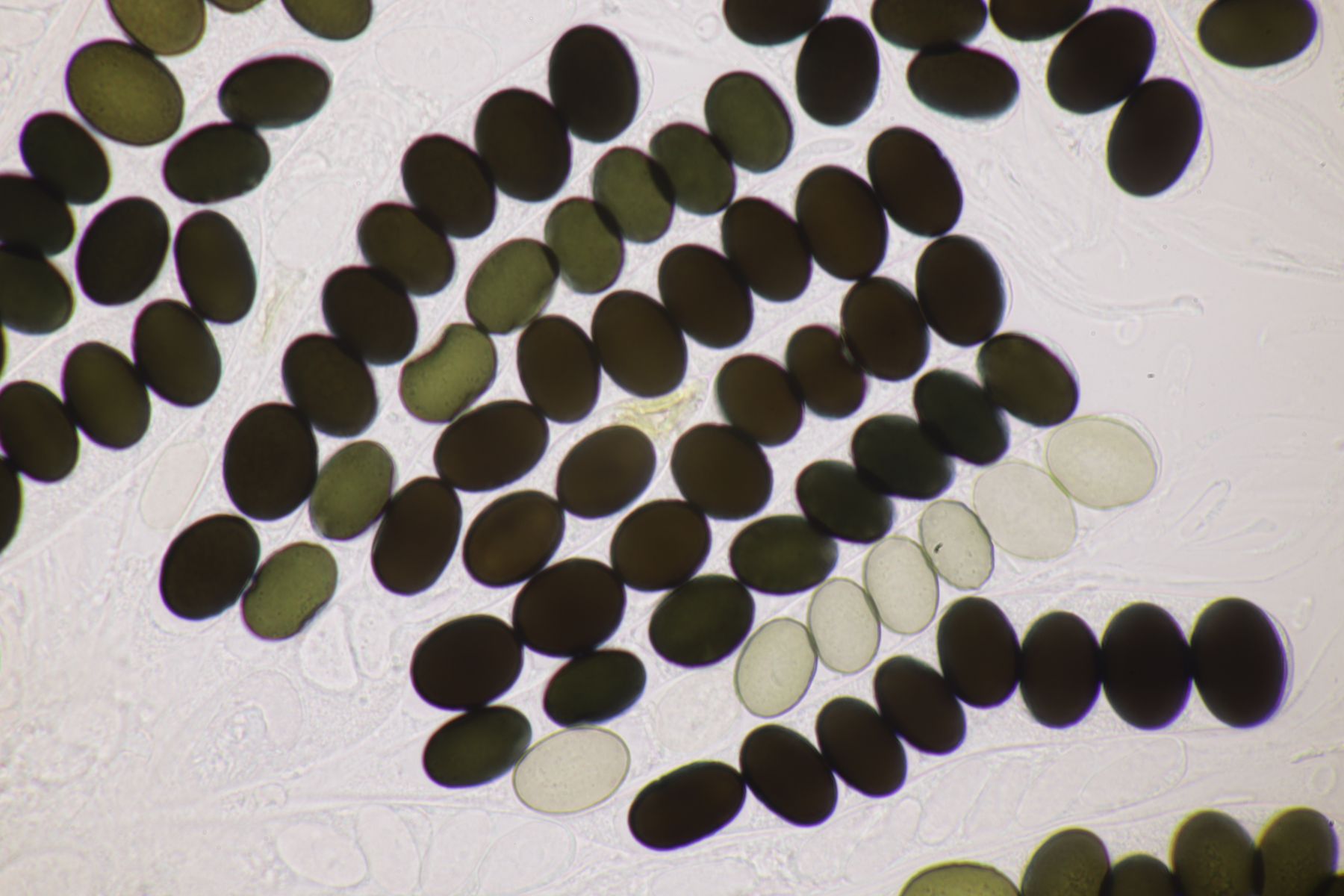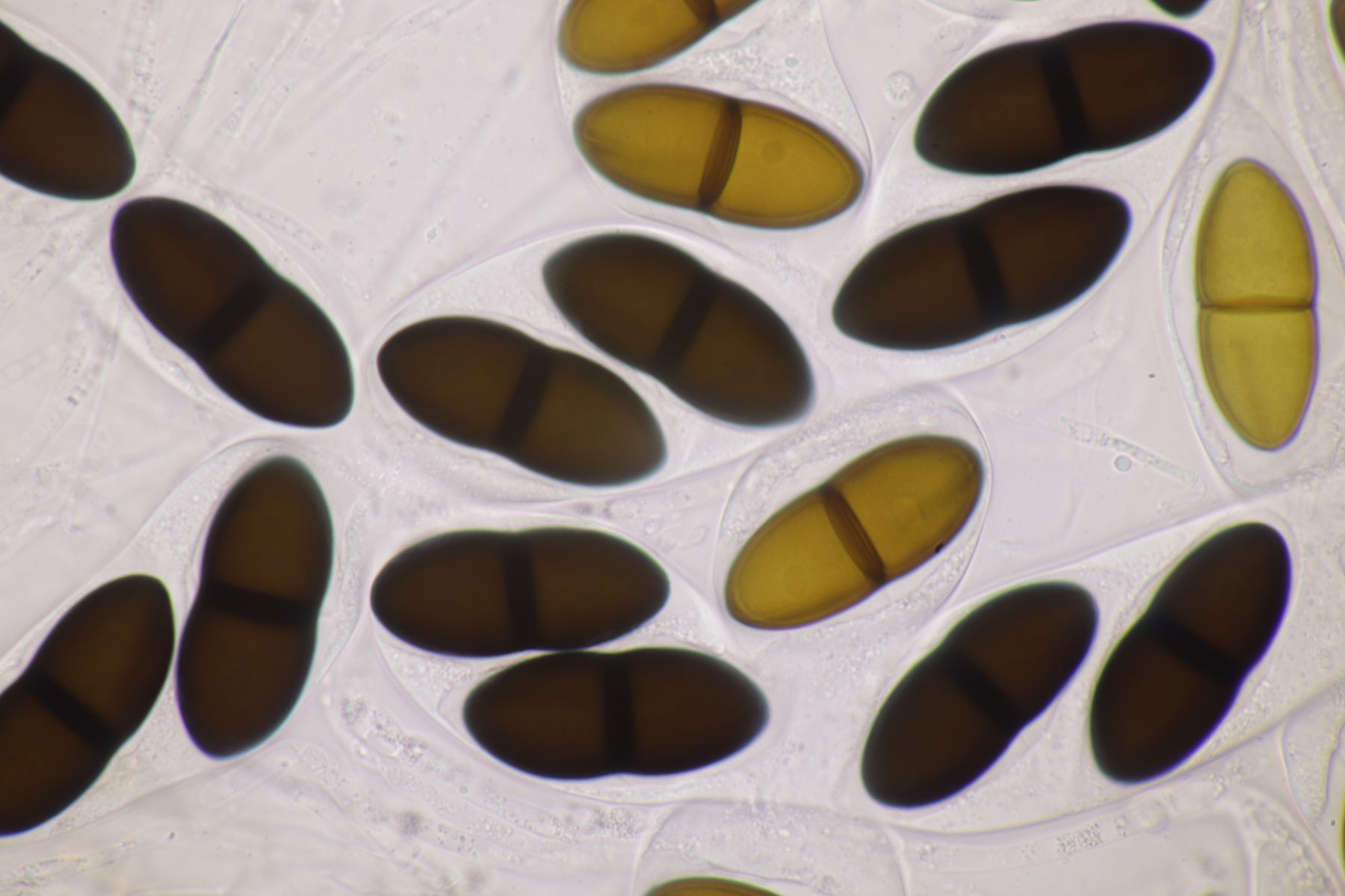 3. Coniochaeta scatigena mit Sporen von 20-22 x 15,5-18,5 µm