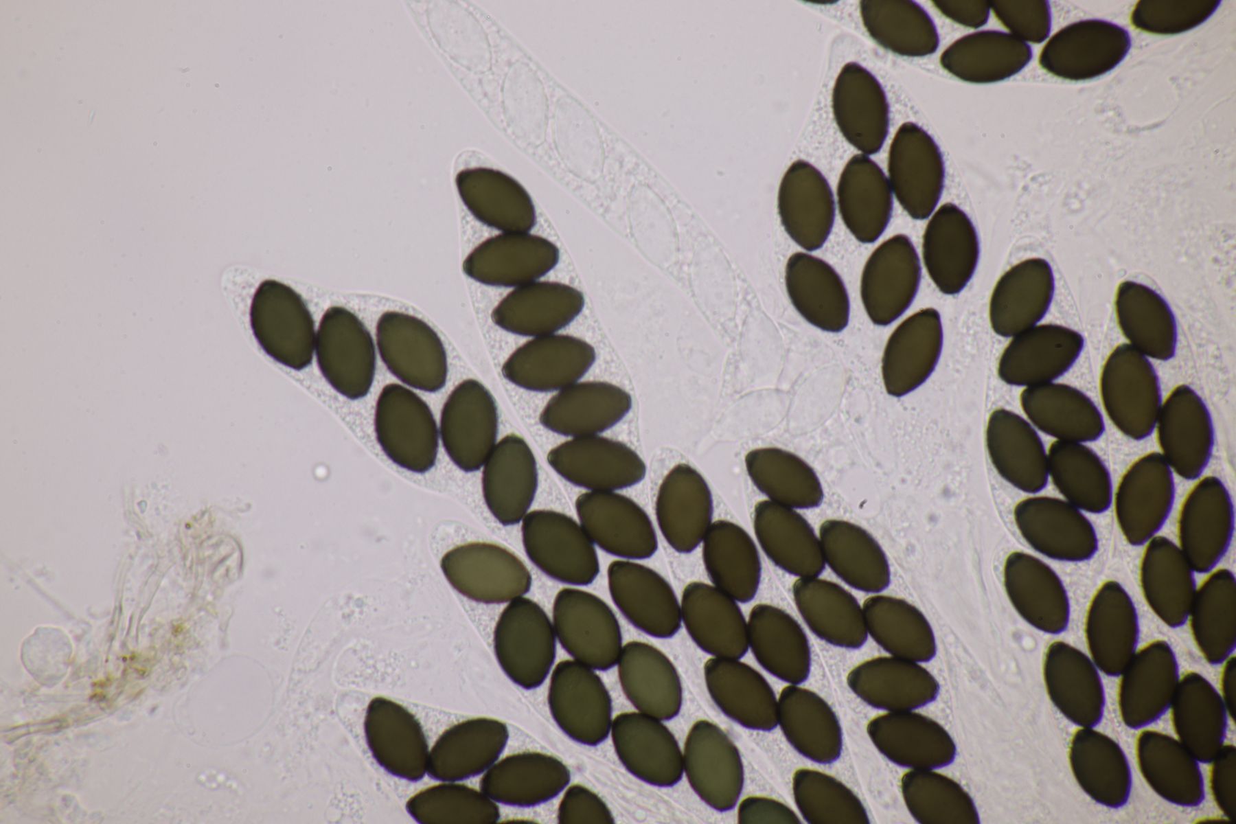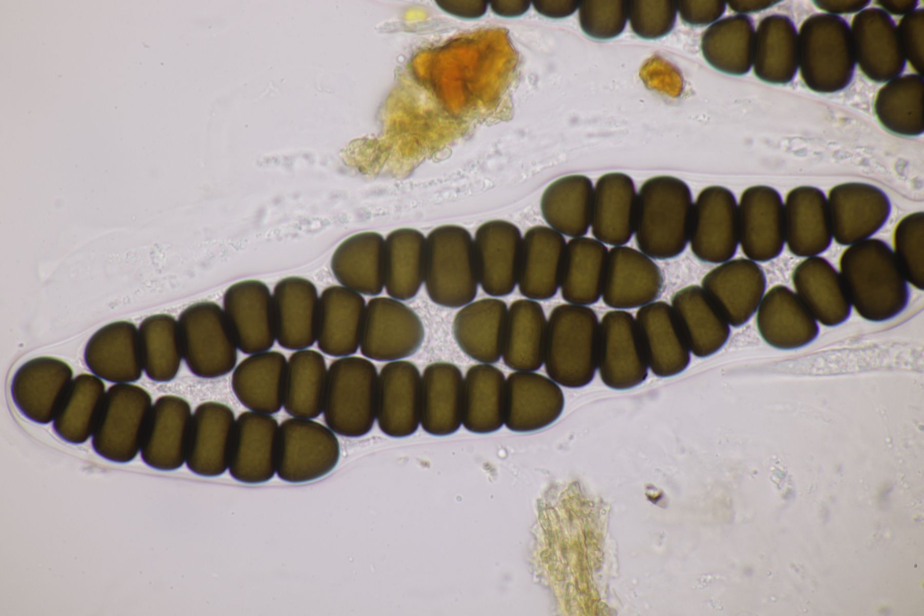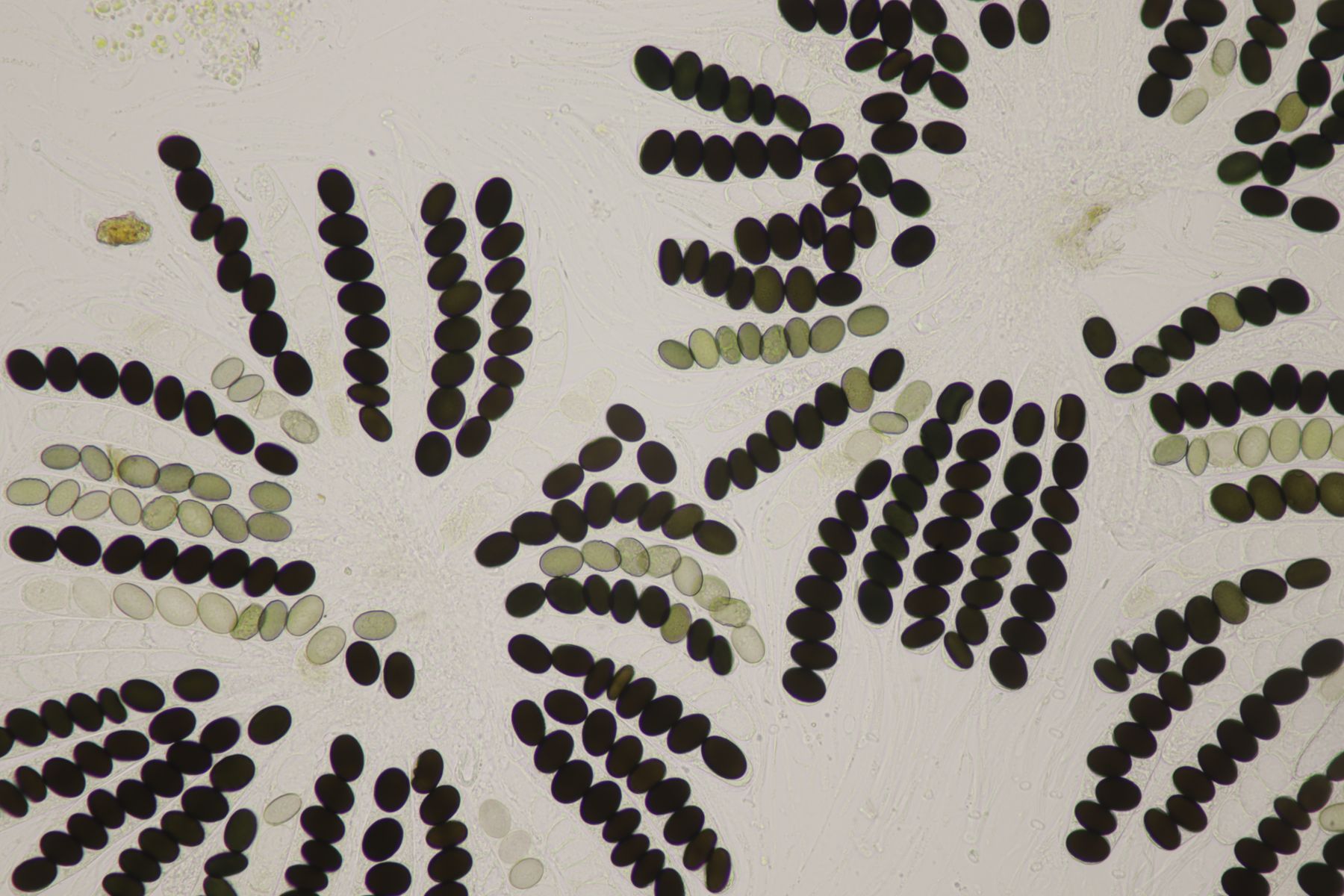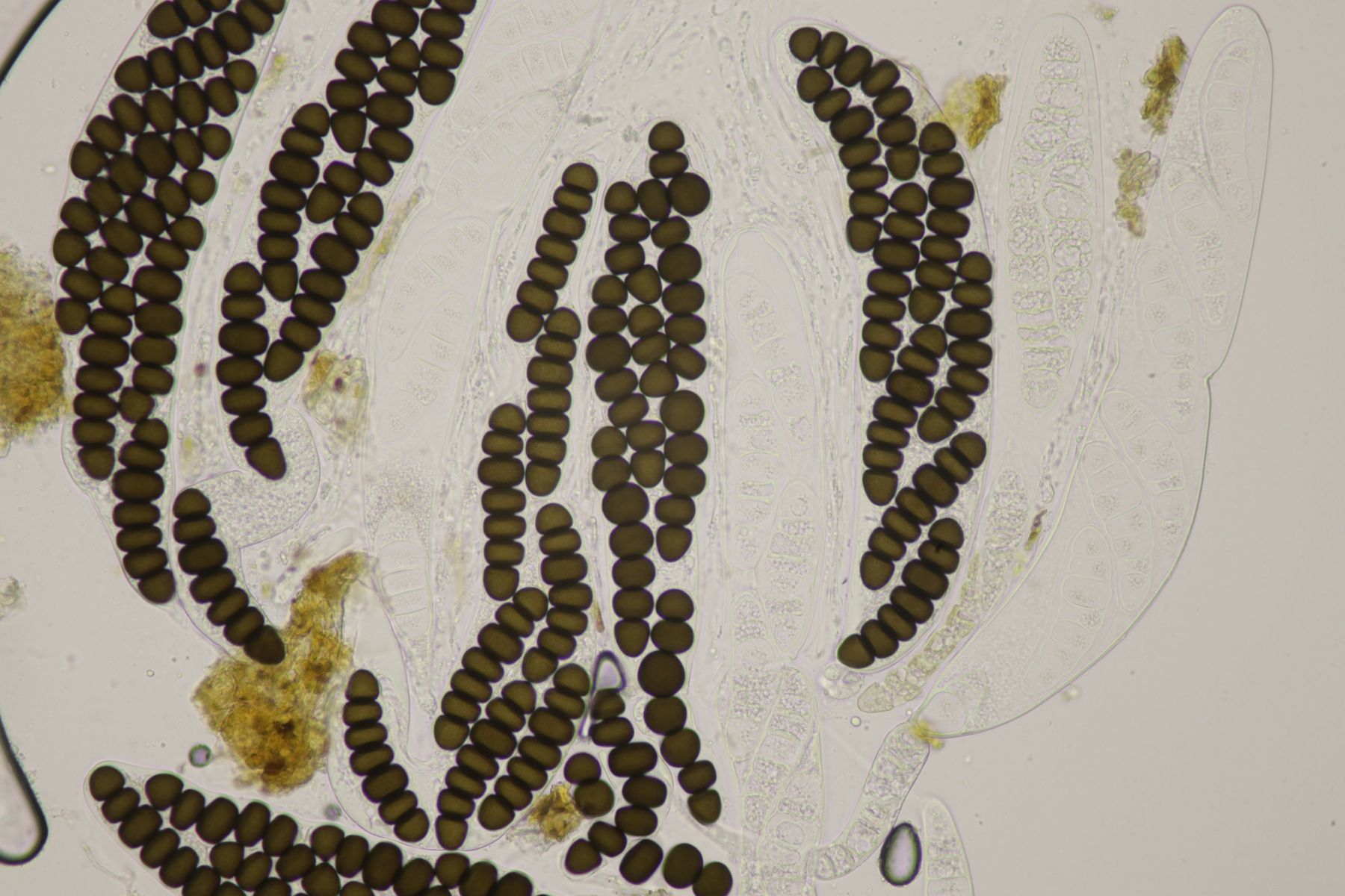 1. Eine Delitschia mit Sporen von 51-55 µm x 19-23 µm, die weder besonders tief noch schräg septiert sind. Die Sporen sind uniseriat in den Asci angeordnet, womit ich dann zu Delitschia patagonica komme, die ja hier im Forum auch schon aus der Lüneburger Heide vorgestellt wurde.