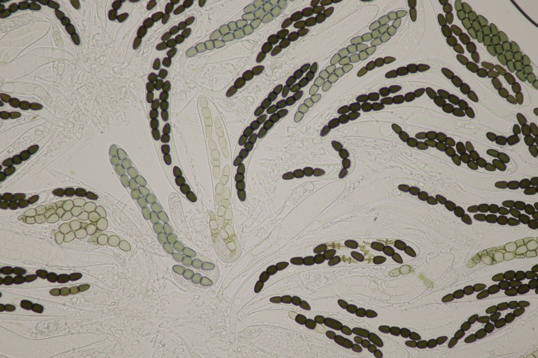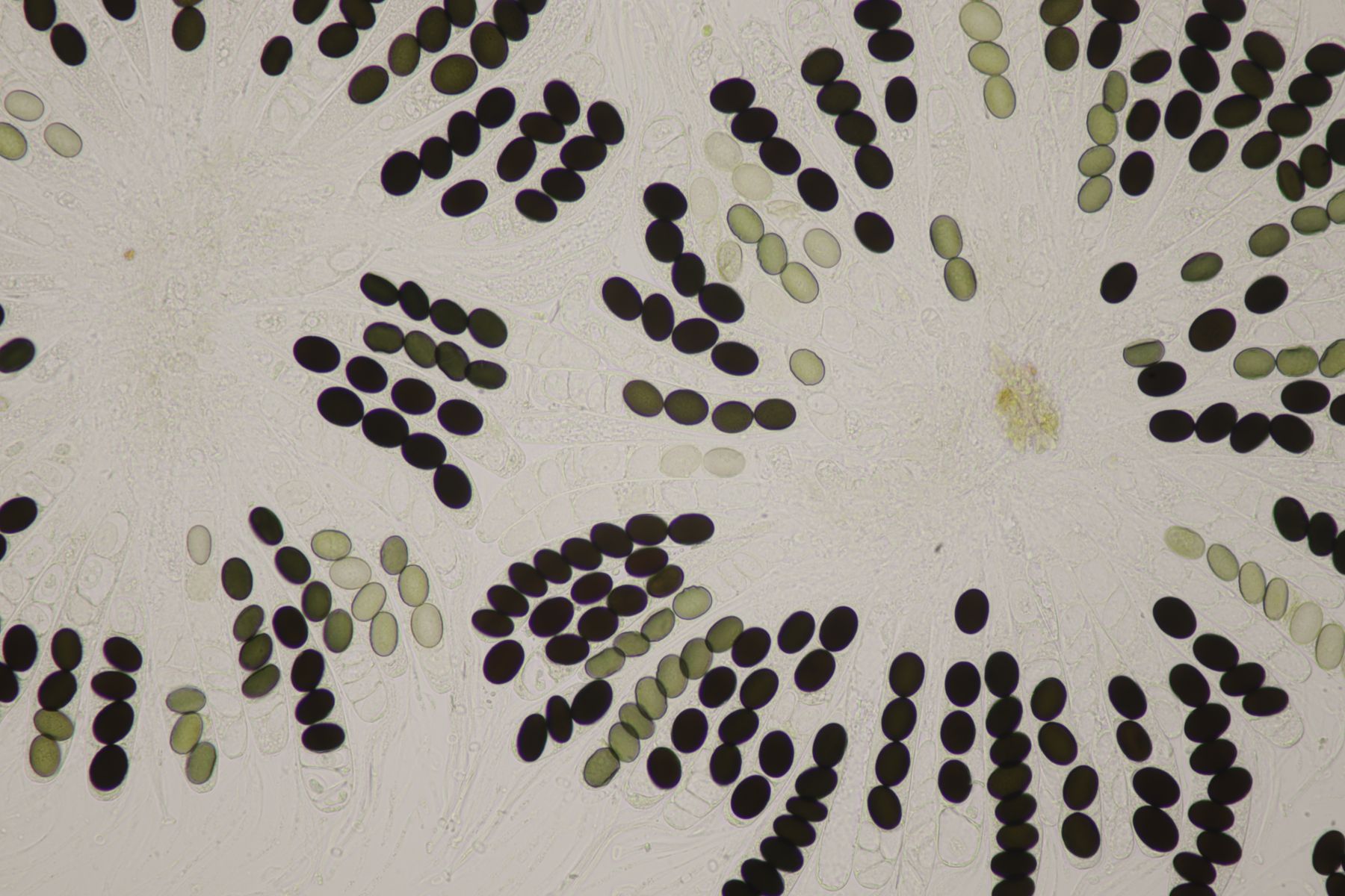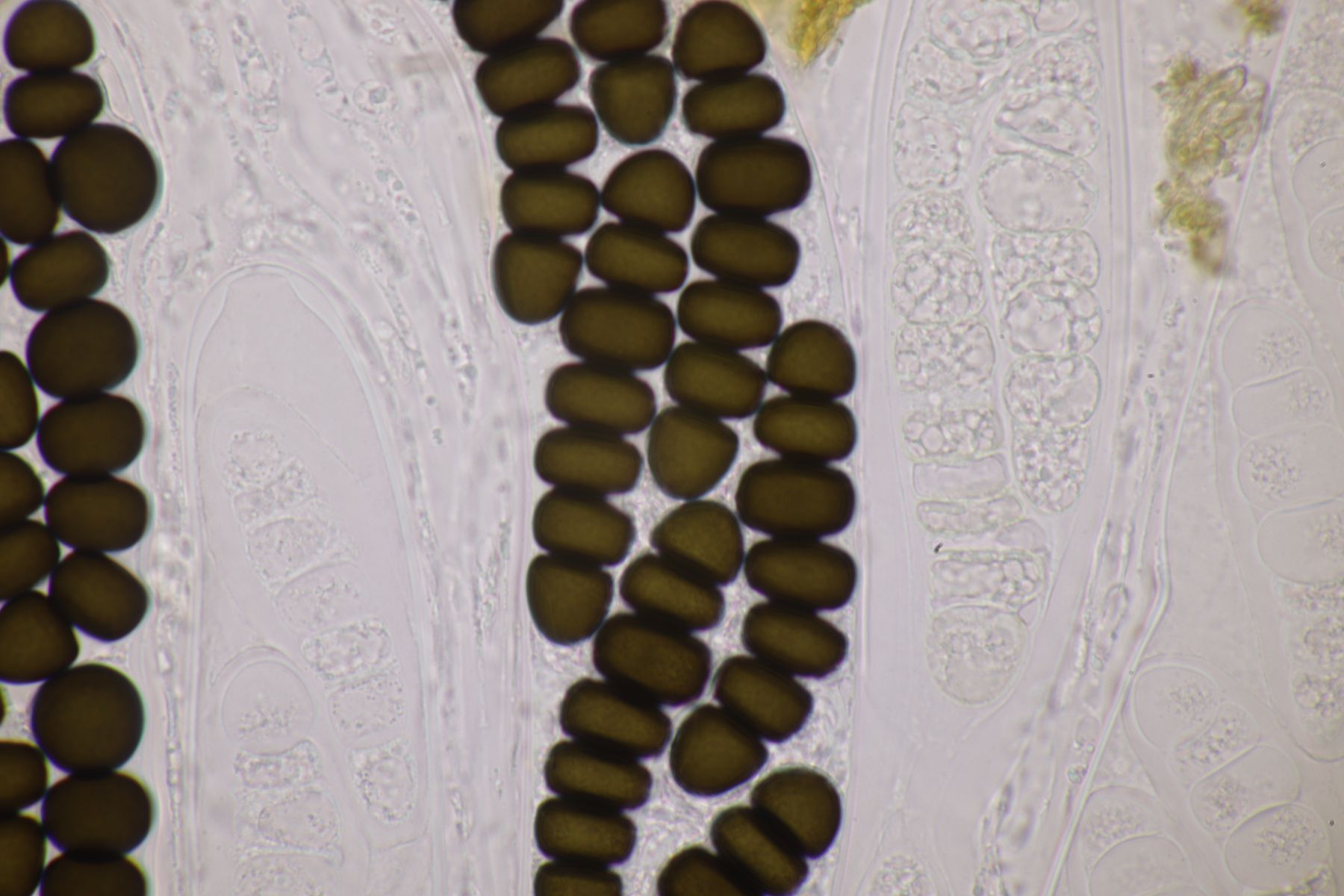 1. Eine Delitschia mit Sporen von 51-55 µm x 19-23 µm, die weder besonders tief noch schräg septiert sind. Die Sporen sind uniseriat in den Asci angeordnet, womit ich dann zu Delitschia patagonica komme, die ja hier im Forum auch schon aus der Lüneburger Heide vorgestellt wurde.