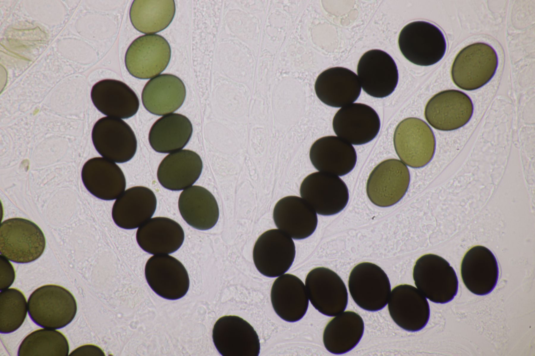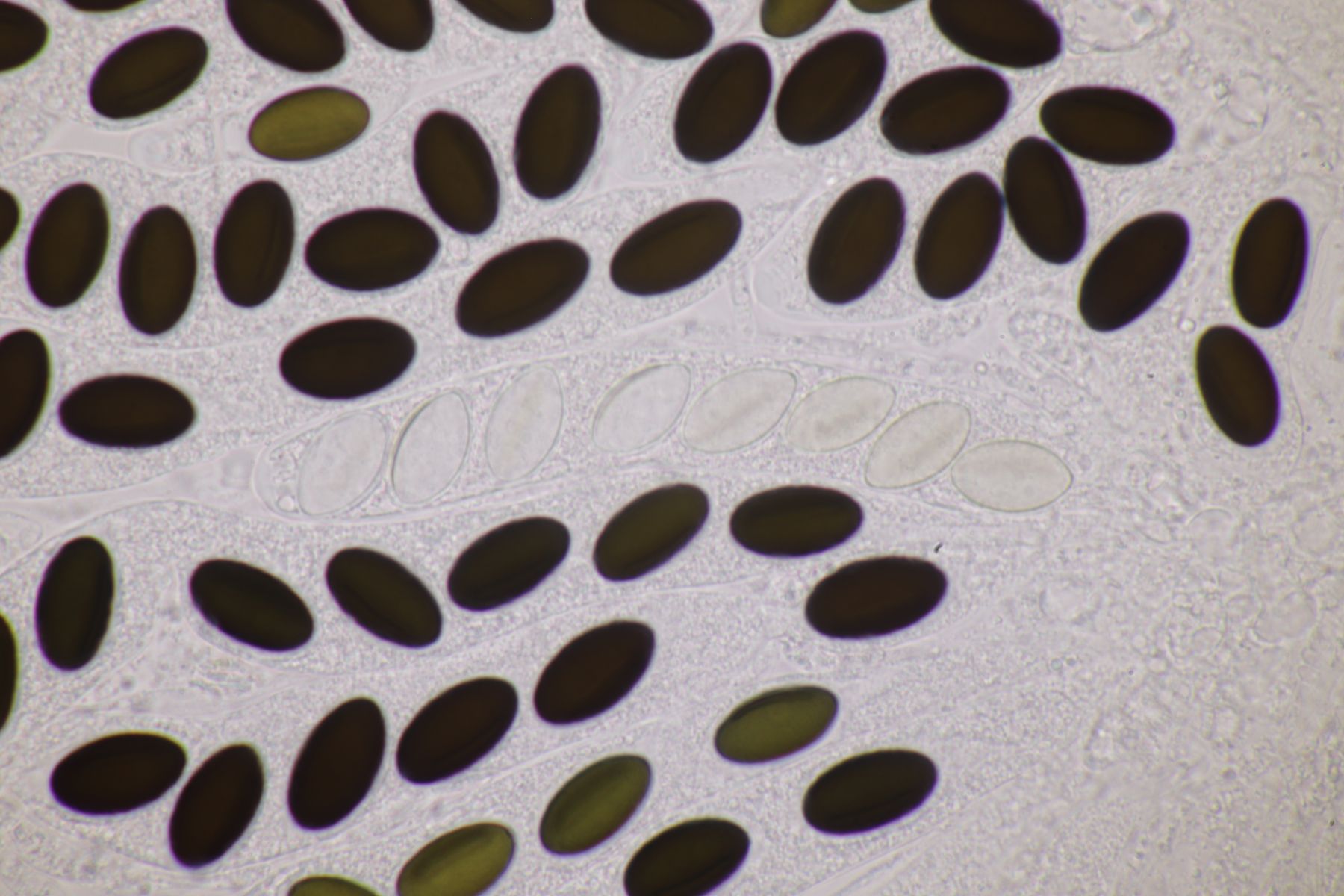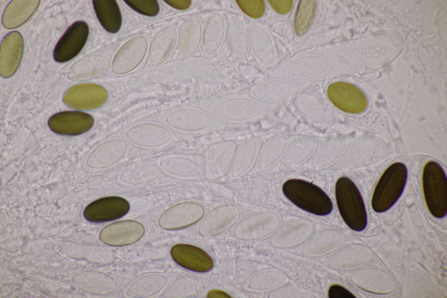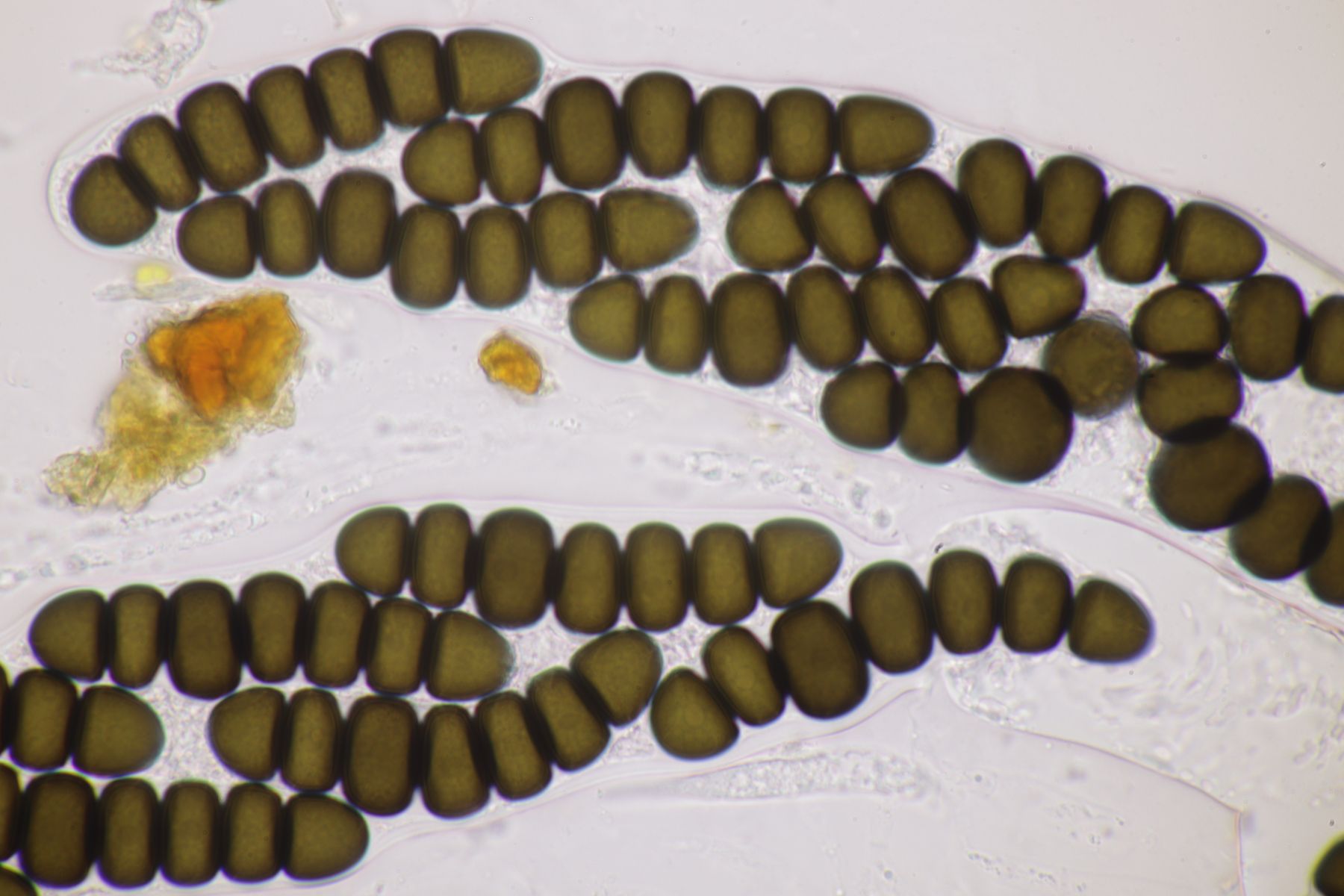 1. Eine Delitschia mit Sporen von 51-55 µm x 19-23 µm, die weder besonders tief noch schräg septiert sind. Die Sporen sind uniseriat in den Asci angeordnet, womit ich dann zu Delitschia patagonica komme, die ja hier im Forum auch schon aus der Lüneburger Heide vorgestellt wurde.